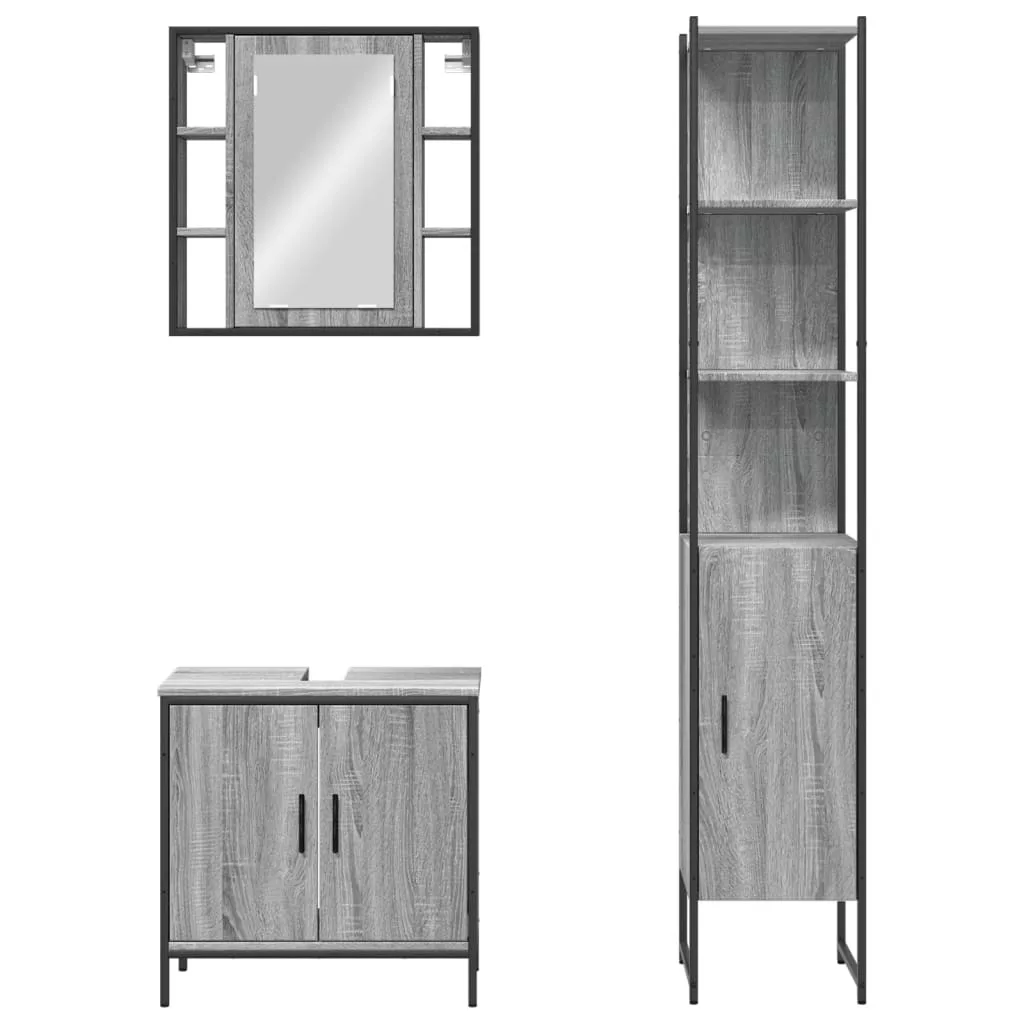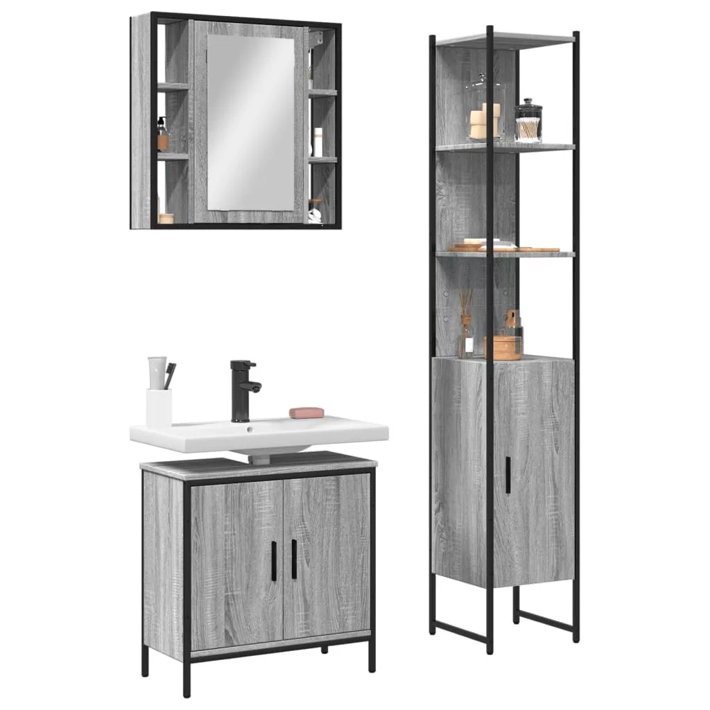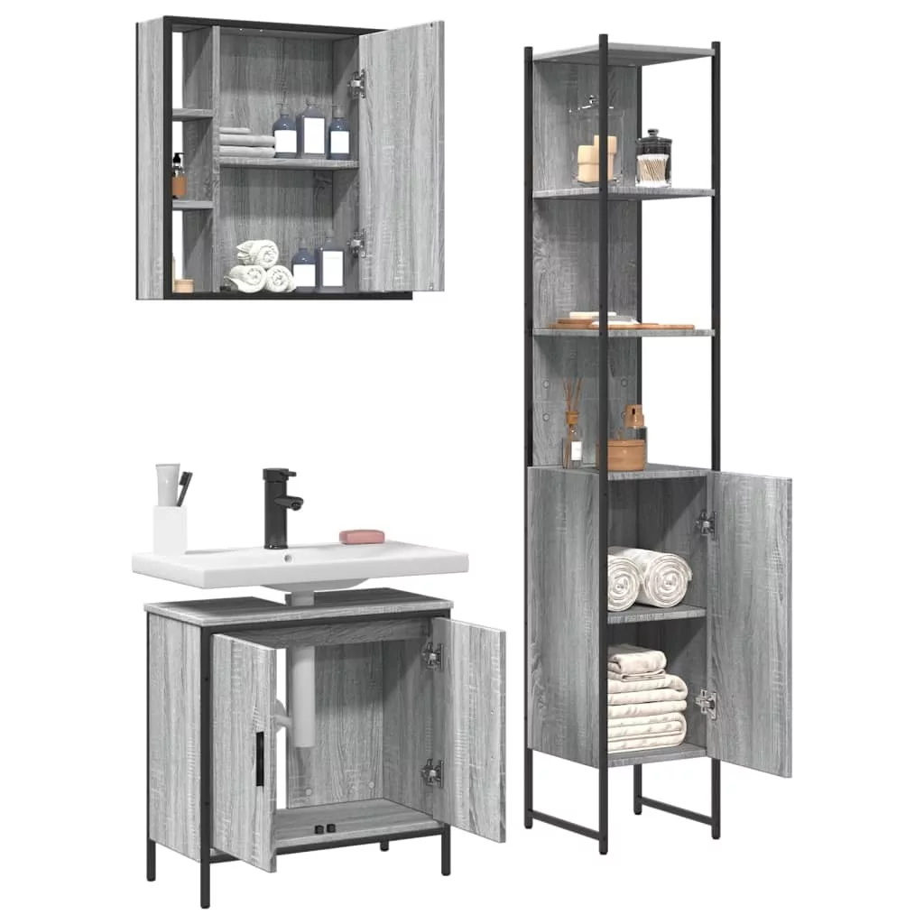 vidaXL 3 részes szürke sonoma szerelt fa fürdőszoba szekrényszett