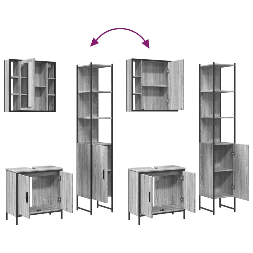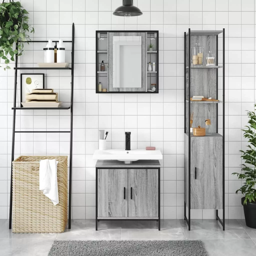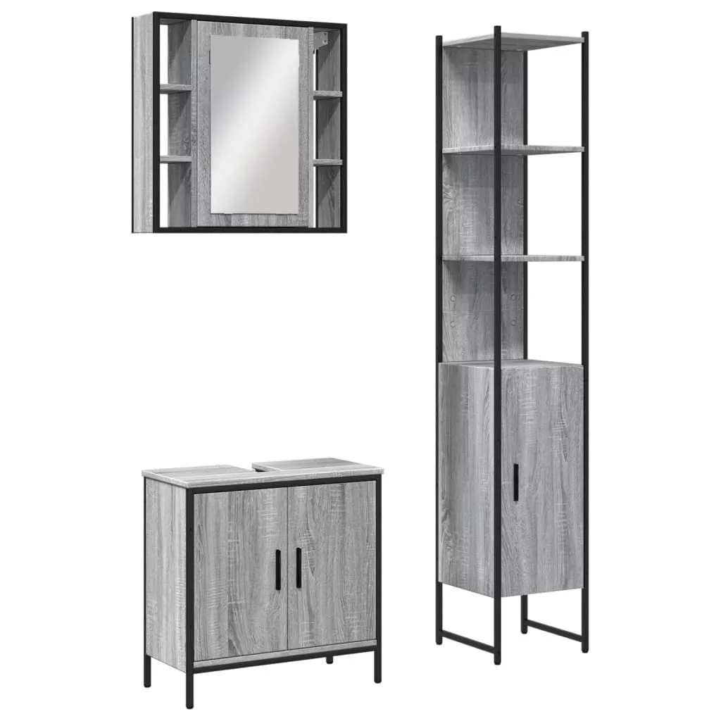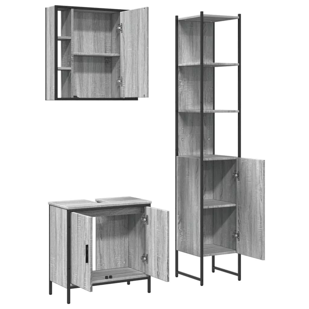 vidaXL 3 részes szürke sonoma szerelt fa fürdőszoba szekrényszett