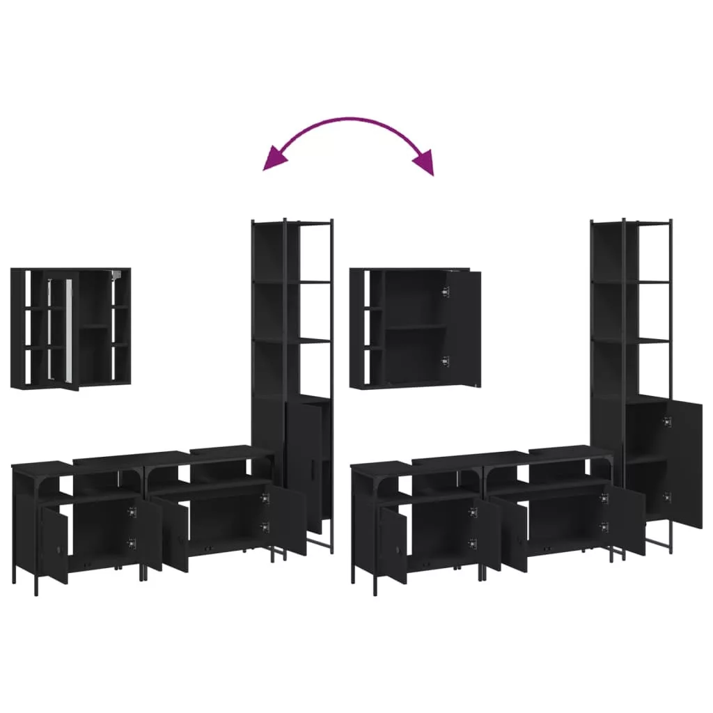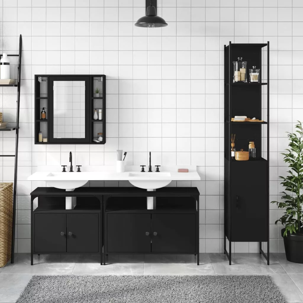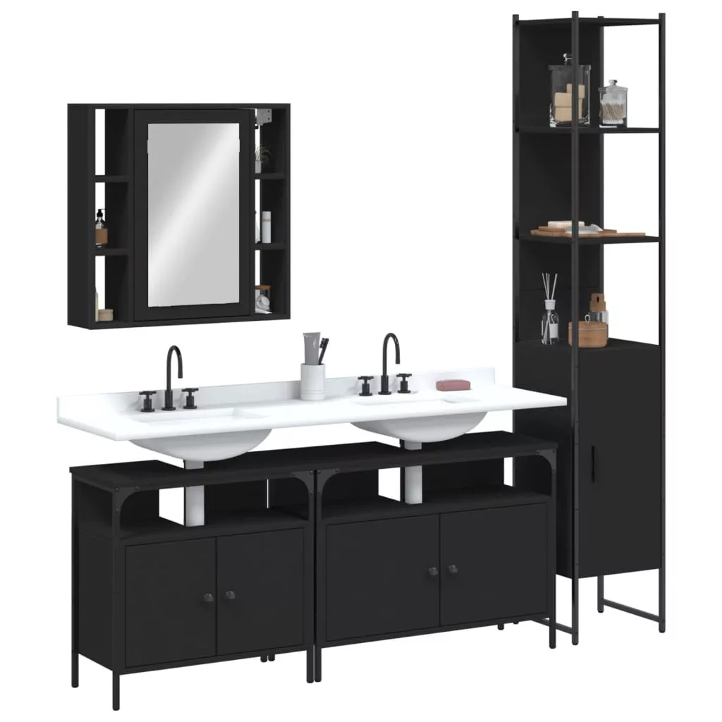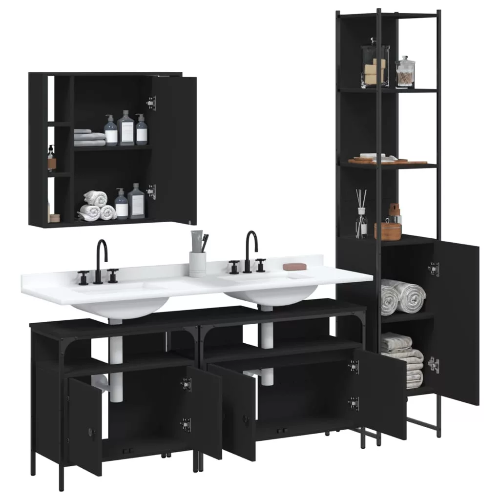 vidaXL 4 részes fekete szerelt fa fürdőszobai szekrényszett