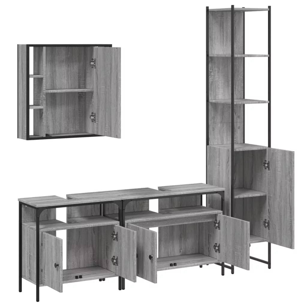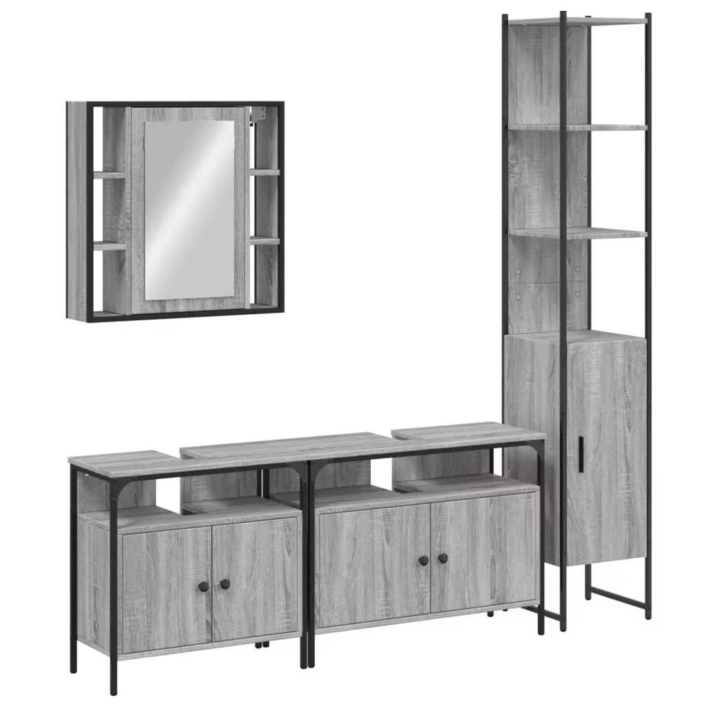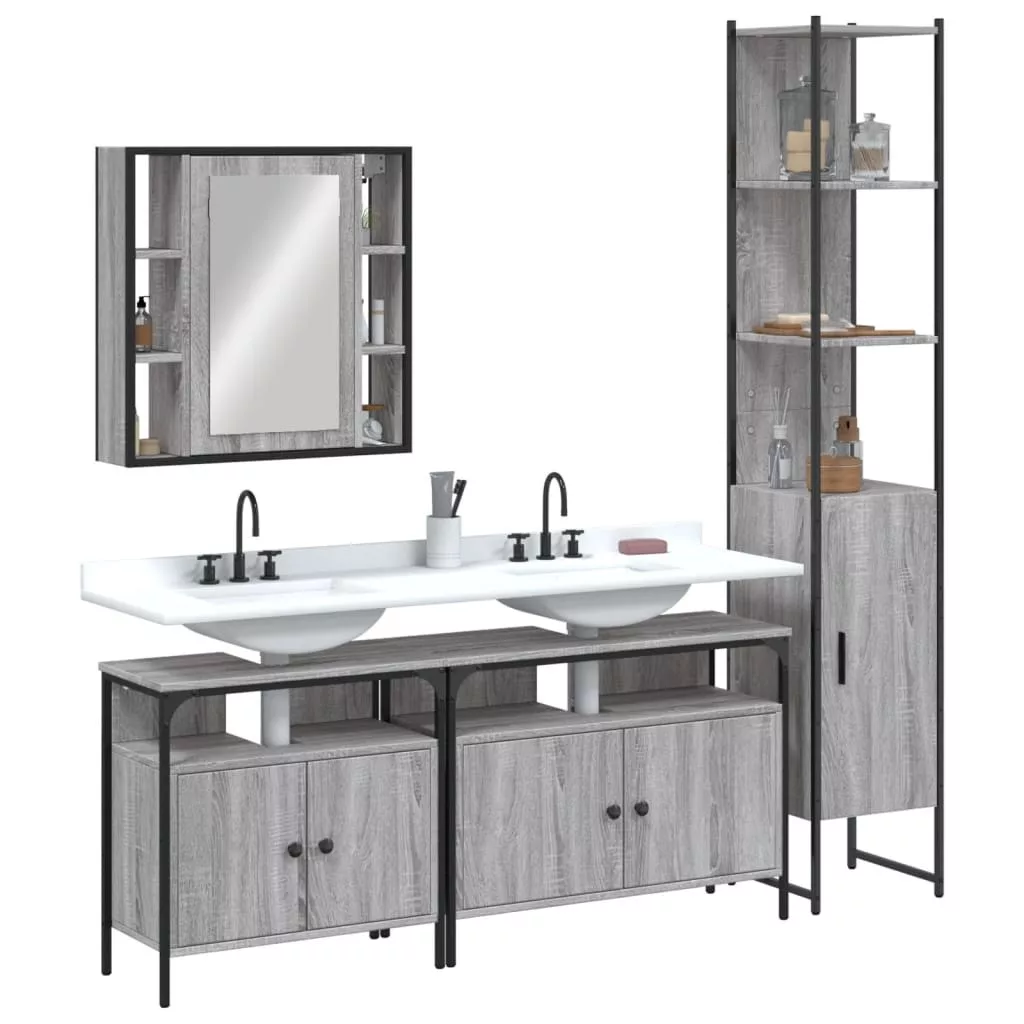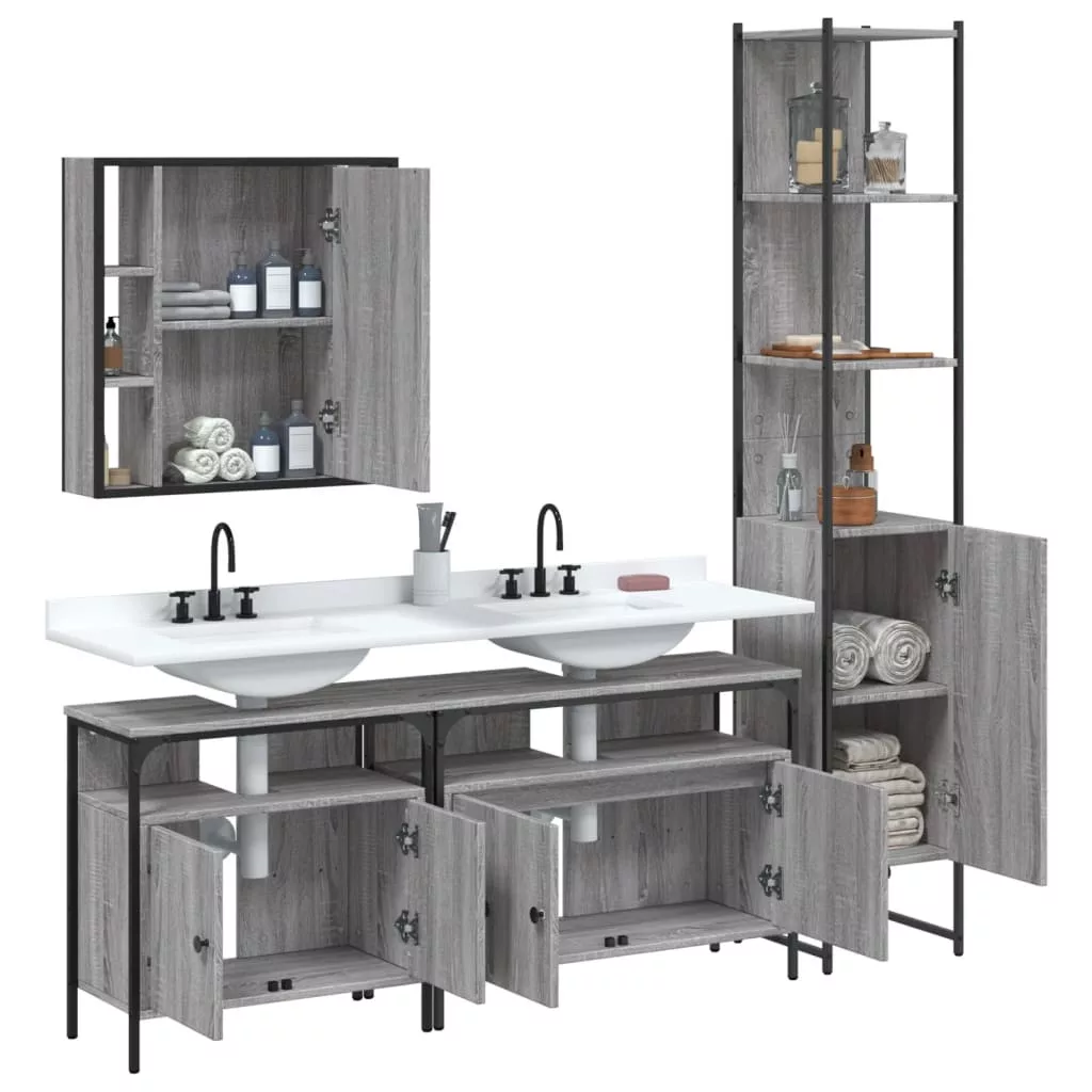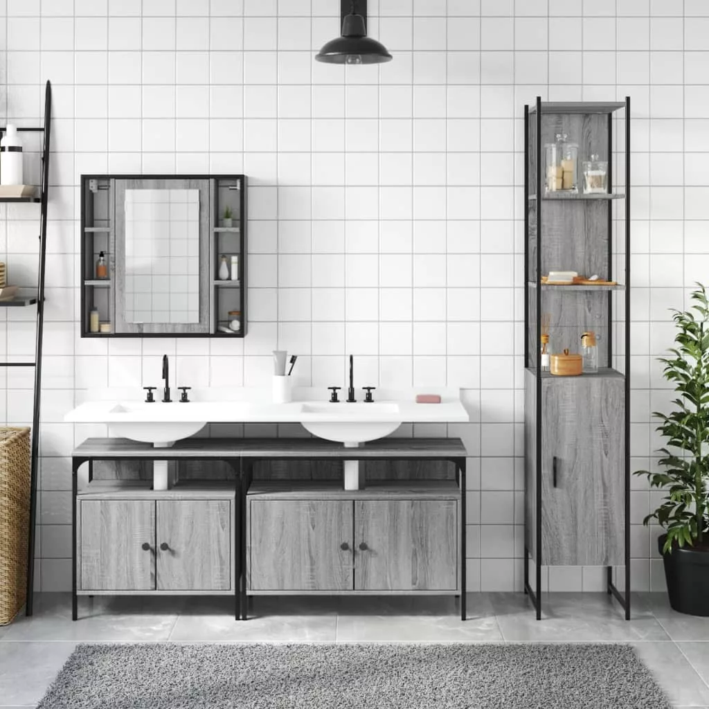 Ez a tetszetős, bőséges tárolóhellyel rendelkező fürdőszobaszekrény-garnitúra elegáns, mégis praktikus kialakítású.