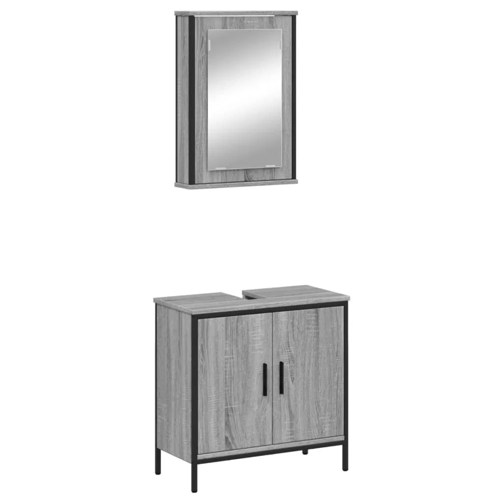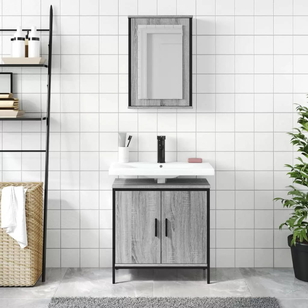 vidaXL 2 részes szürke sonoma színű szerelt fa fürdőszobai bútorszett
