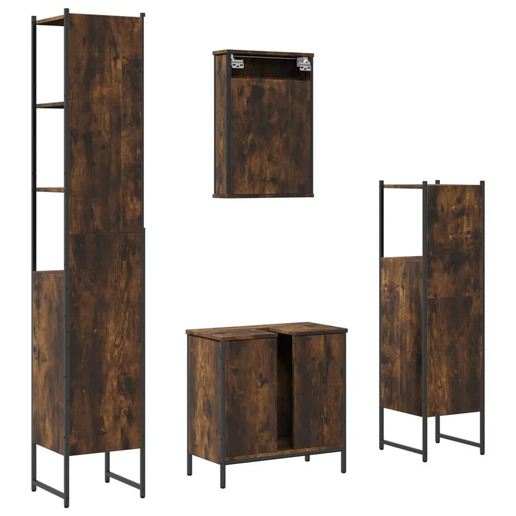 vidaXL 4 részes füstös tölgy színű szerelt fa fürdőszobai bútorszett