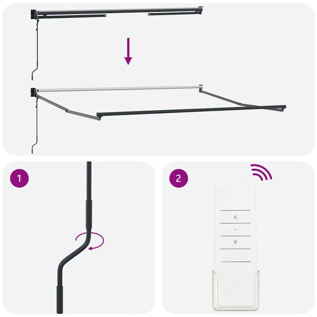 - Automata funkció: A napellenzőt a mellékelt távirányítóval könnyedén kinyithatja és visszahúzhatja.