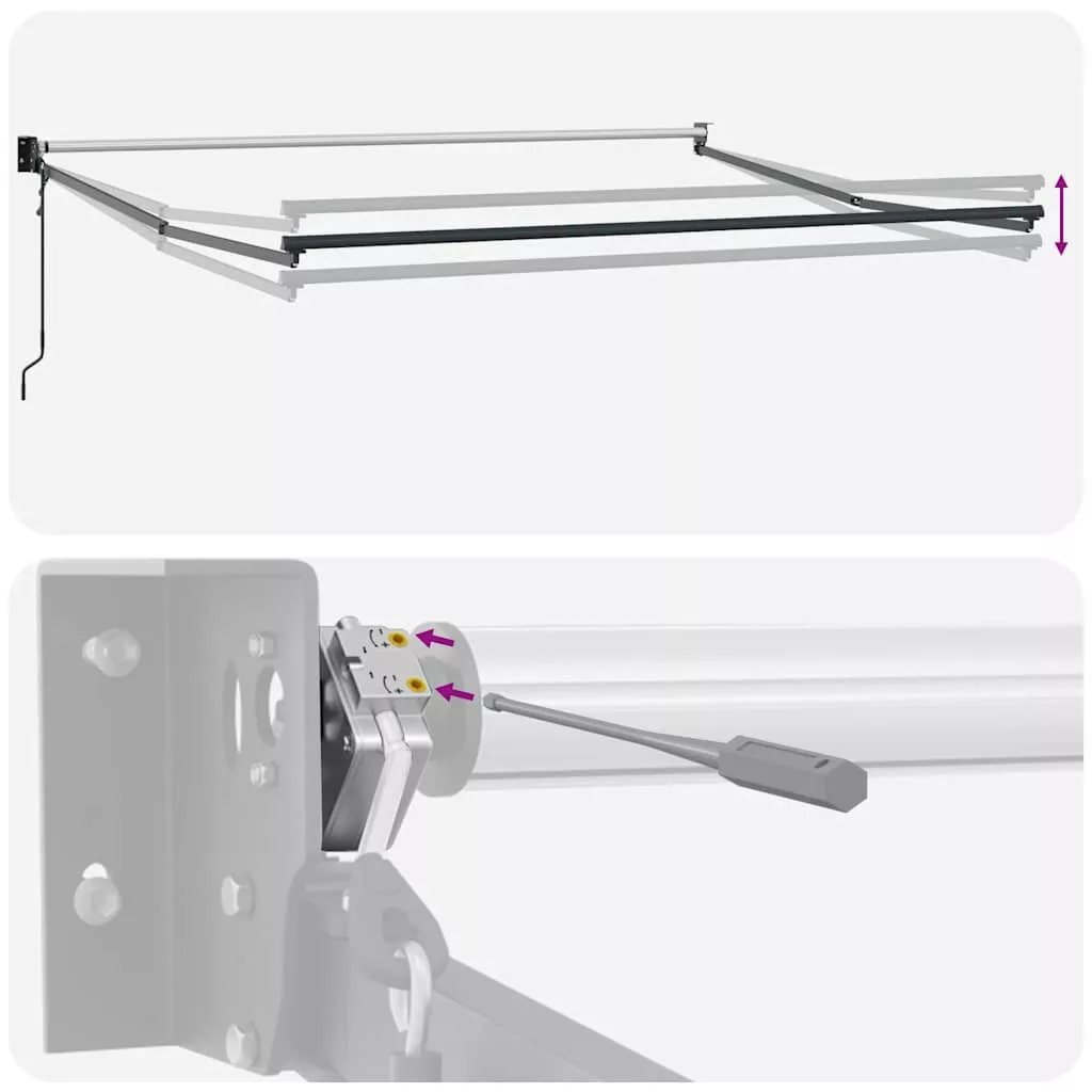- Könnyen kezelhető: A szög és a magasság állítható, hogy megfeleljen az Ön különböző igényeinek. A napellenző a hosszú hajtókarral zökkenőmentesen nyitható és visszahúzható.