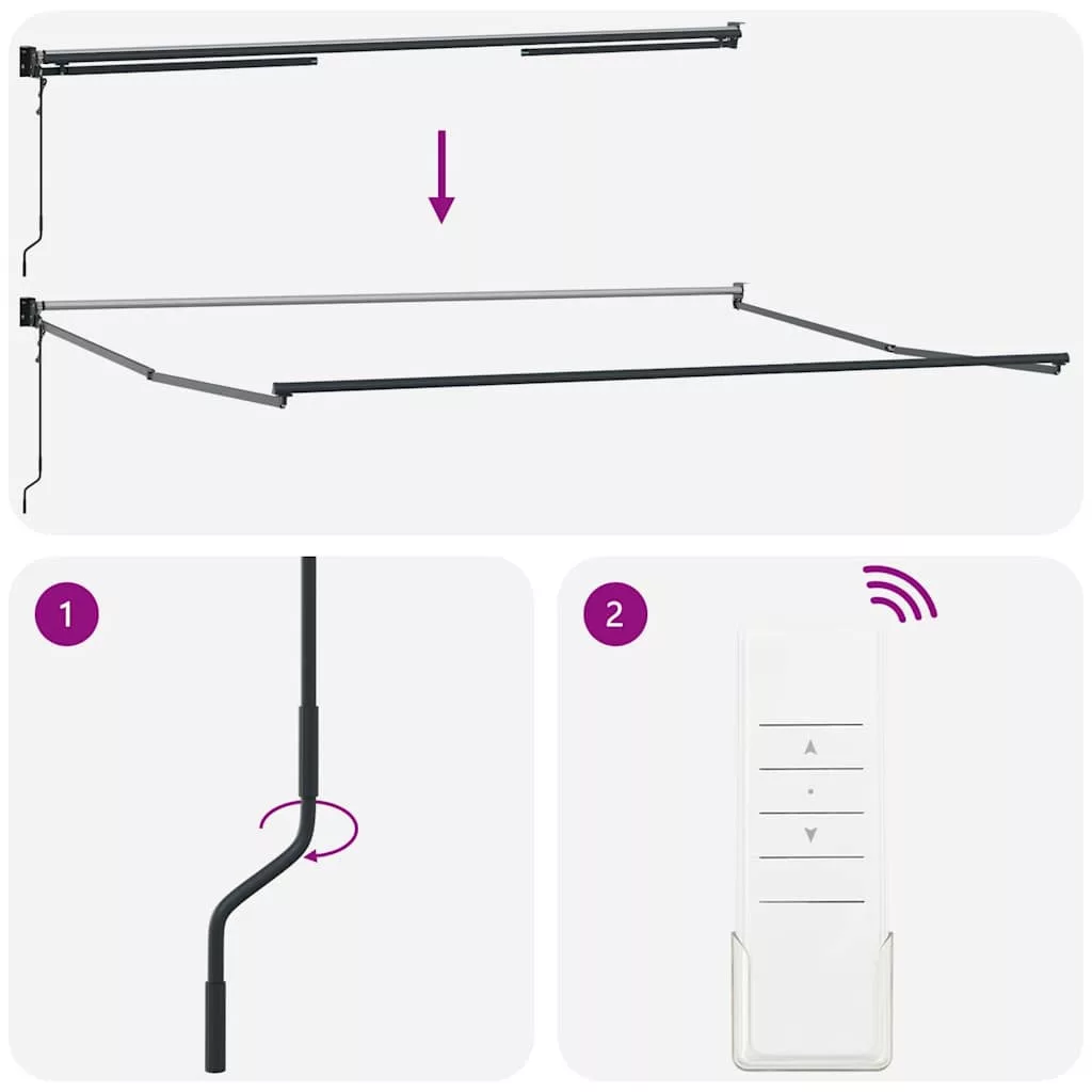 - Automata funkció: A napellenzőt a mellékelt távirányítóval könnyedén kinyithatja és visszahúzhatja.