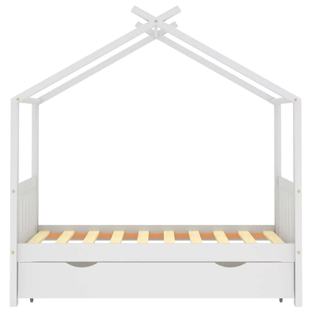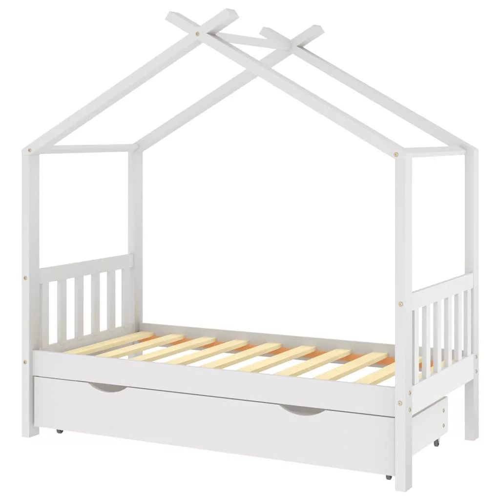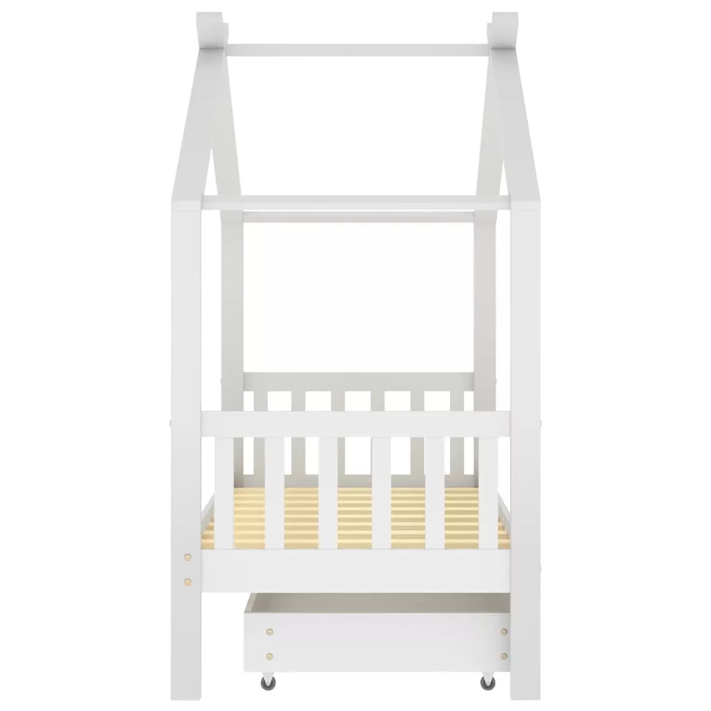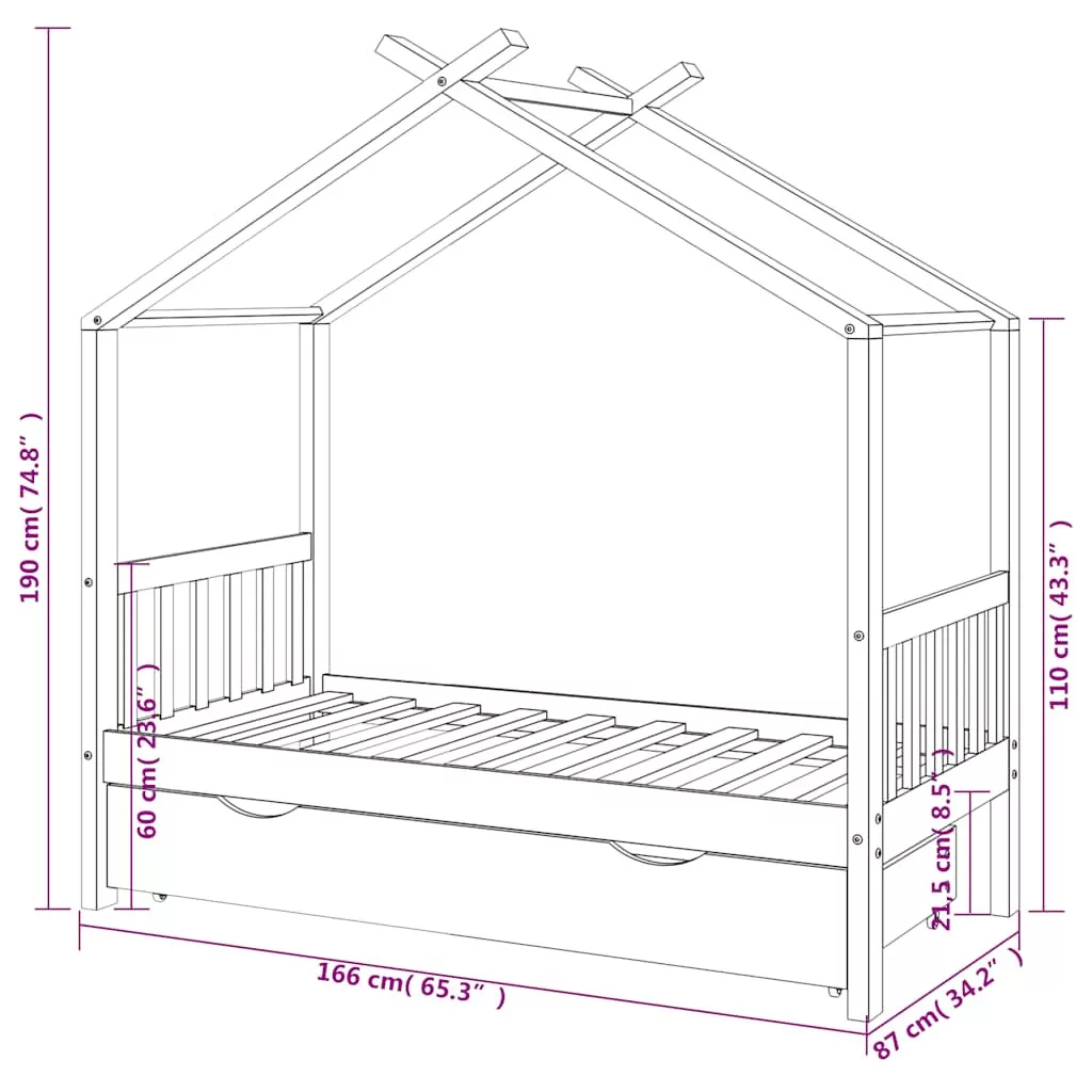 Az ágy okosan megtervezett, faház stílusú kerettel rendelkezik, ahová ágyfüggönyöket akaszthat, hogy magánéletet teremtsen gyermeke számára. Olvasókönyvként vagy játszóházként is használható. Tömör fenyőfából készült, ez az ágykeret rendkívül masszív és tartós. Az erős lécek biztosítják a szükséges tartást és nagyon kényelmesek. A mellékelt, 2 fogantyúval ellátott ágyfiók bőséges tárolóhelyet biztosít összehajtott ruhák, játékok stb. tárolására, így a szoba tiszta és rendezett marad. A könnyen gördülő kerekek szőnyegpadlón és fa padlón is gördülnek. Ez az ágykeret 80 x 160 cm-es matrachoz alkalmas.