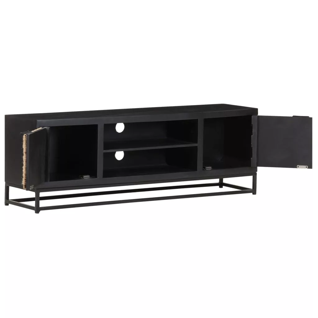 A sztereószekrény tömör mangófából, egy trópusi keményfából készült, amely elbírja a ránehezedő súlyt, és időtálló is, így stabil és tartós. Az ajtó természetes jutából készült, vastalpa pedig tovább növeli stabilitását. A médiaegység két ajtóval és két rekesszel is rendelkezik, így bőséges tárhelyet biztosít.