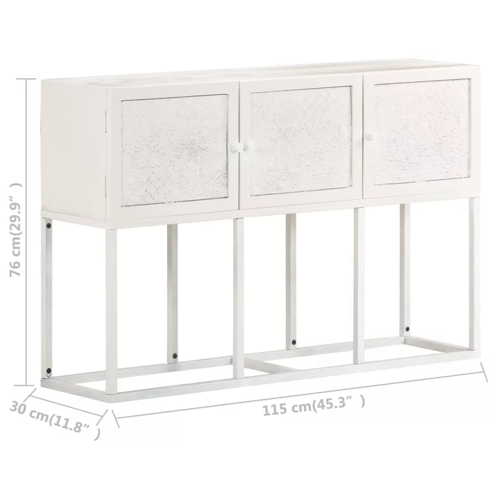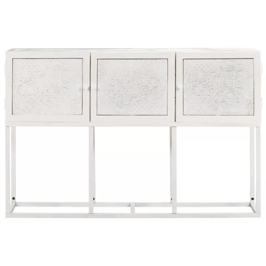 A kisszekrény tömör mangófából, egy trópusi keményfából készült, amely elbírja a ránehezedő súlyt, és időtálló is, így stabil és tartós. A porszórt vas váz tovább növeli stabilitását. A szekrény 3 ajtóval rendelkezik, így bőséges tárolóhelyet biztosít. Masszív fa lapjára dísztárgyakat, például képkereteket, cserepes növényeket, vázákat stb. helyezhet.