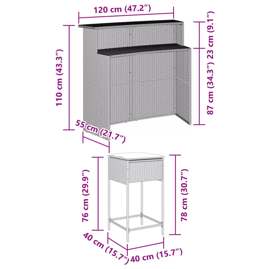 Ez a divatos kerti bárszett, amely egyszerre elegáns és praktikus, garantáltan kertje, udvara vagy bármilyen egyéb környezet központi eleme lesz.