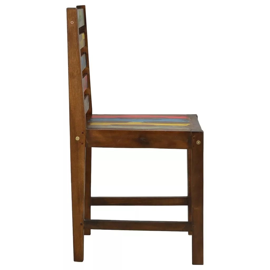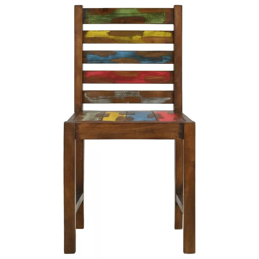 A székek tömör újrahasznosított fák kombinációjából készültek, többek között tík, mangó, fenyőfa, bükk stb. Ezeket a fákat régi épületekből, például gyárakból, fészerekből és csónakokból hasznosították újra, ami fantasztikus környezetbarát opcióvá teszi a bútorgyártásban. Mivel minden darab kézzel készített, a színek változatosak, és kék, zöld, piros és néha sárga árnyalatokat tartalmaznak. Ez minden egyes darabot egyedivé tesz!