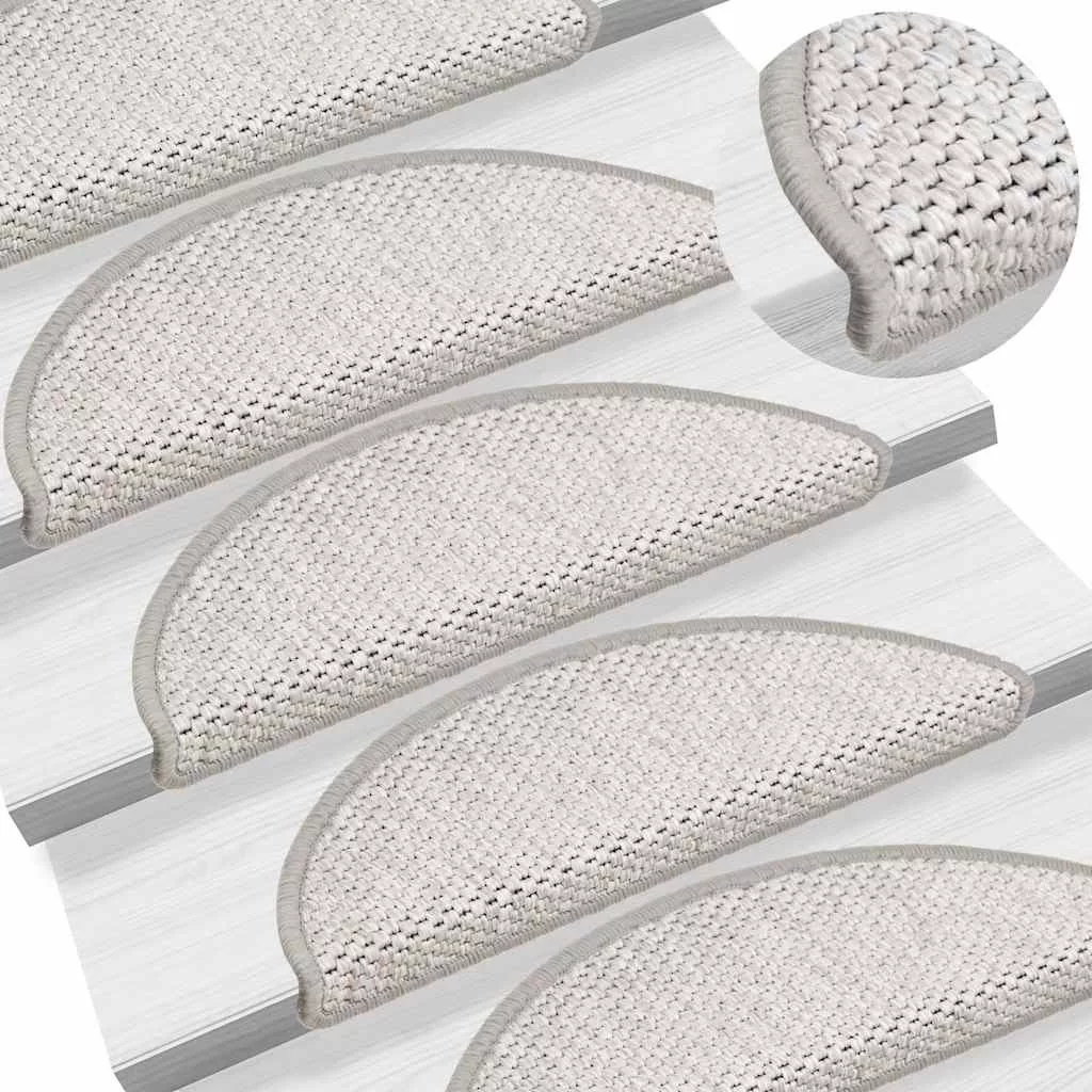 A szőnyegek strapabíró, szizál hatású szövetből készültek, így hangszigetelők, csúszásmentesek, kényelmesek és melegek is. A lépcsőszőnyegek moshatóak, és kialakításuknak köszönhetően a lépcső elejét és tetejét is védik. A hátoldalon lévő öntapadó szalagok segítségével a szőnyegek könnyen a lépcsőre tehetőek.