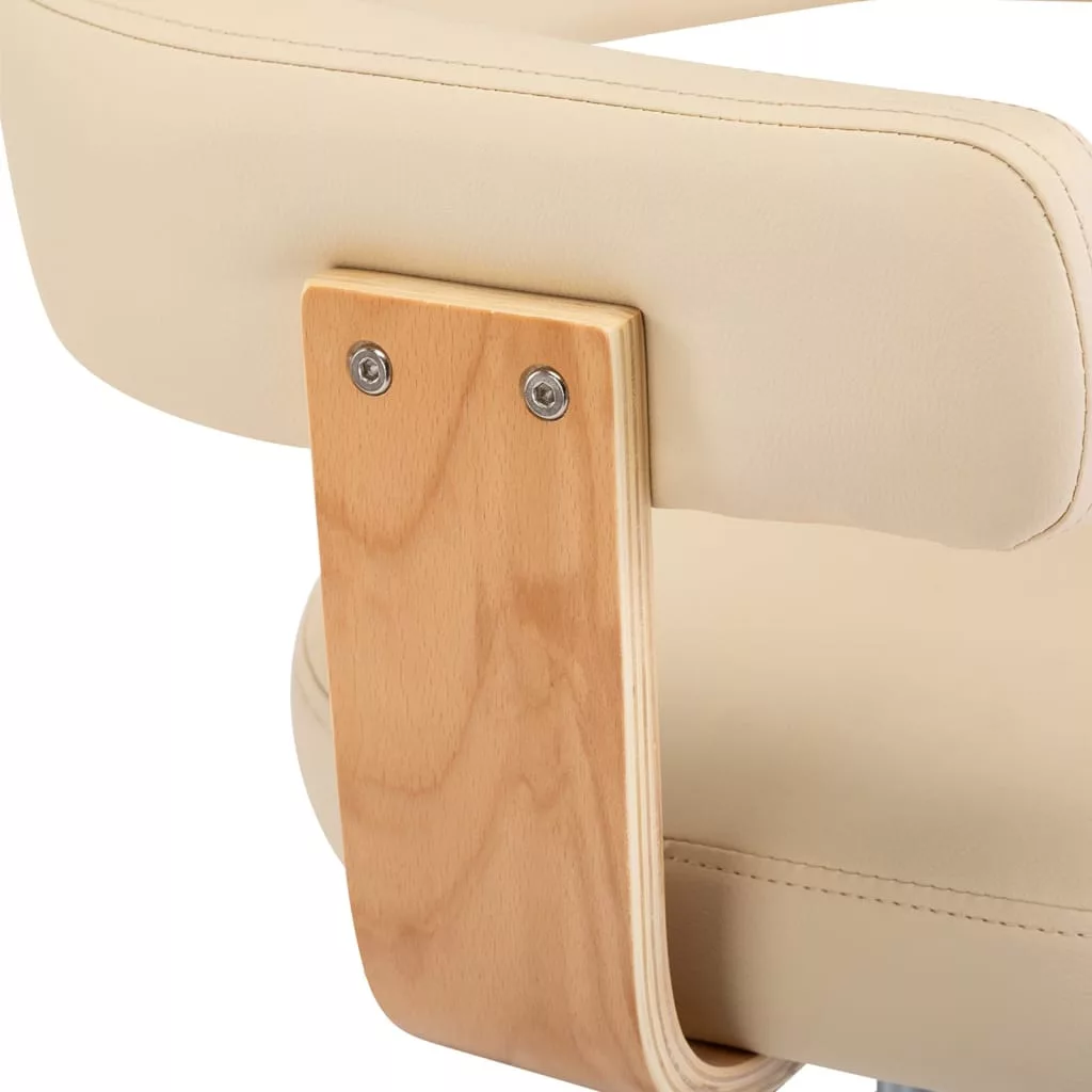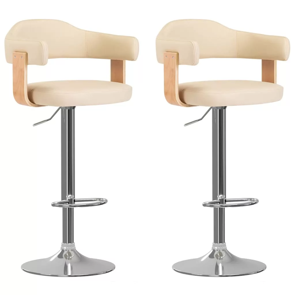 Ezek a bárszékek műbőr kárpitot és kényelmes párnázást kaptak. A hajlított fa és a vasváz nagy szilárdságot és stabilitást biztosít, és egyedi szépséggel és stílussal ruházza fel a székeket. A beépített lábtámasz és az ergonomikus kialakítás kényelmes ülést biztosít. A gázemelő mechanizmusnak köszönhetően a két forgó bárszék magassága állítható, és bármely bár vagy étkező tökéletes kiegészítője lesz. A székek a nagy rugalmasság érdekében 360 fokban forgathatóak.