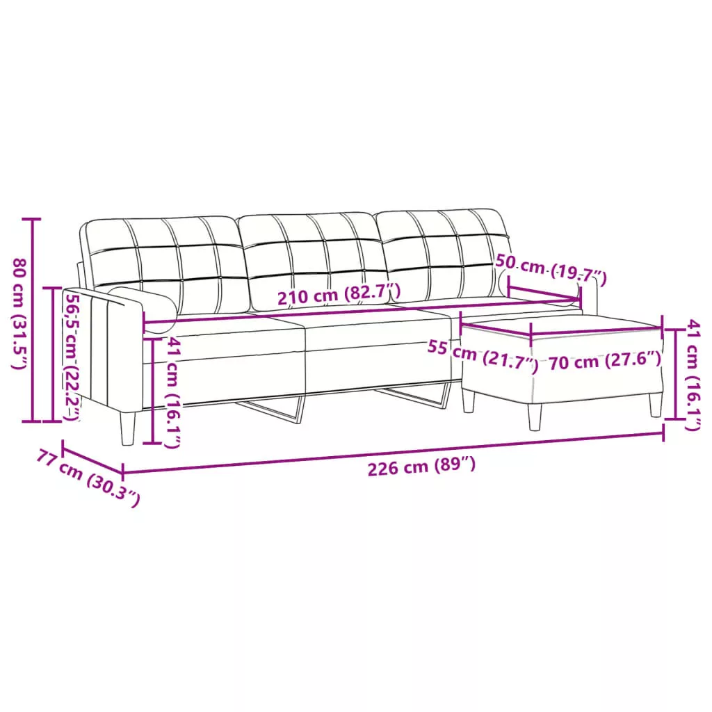 - Teljes mérete: 226 x 77 x 80 cm (Szé x Mé x Ma)