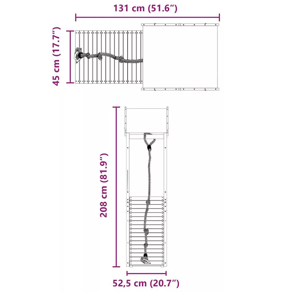 - Tartós anyag: Ez a mászóka vákuumnyomással impregnált fenyőfából készült. A tömör fenyőfa az erősségéről és tartósságáról ismert. Egyenes erezete és jellegzetes csomói hozzájárulnak rusztikus varázsához. Konzerváló oldattal impregnálták, és autokláv kezelésen esett át, így megnőtt az ellenálló képessége a bomlással és az időjárási viszontagságokkal szemben.
