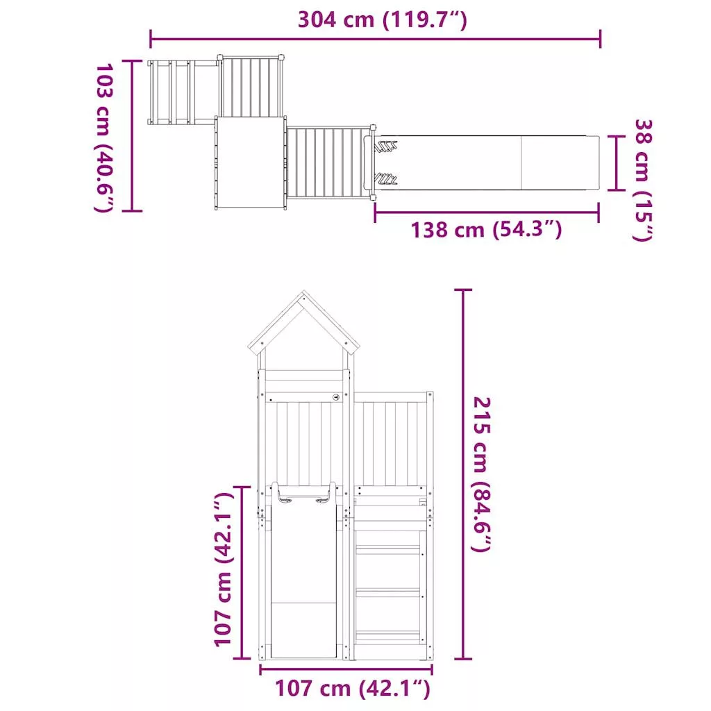- Játszótorony anyaga: tömör fenyőfa (kezeletlen)