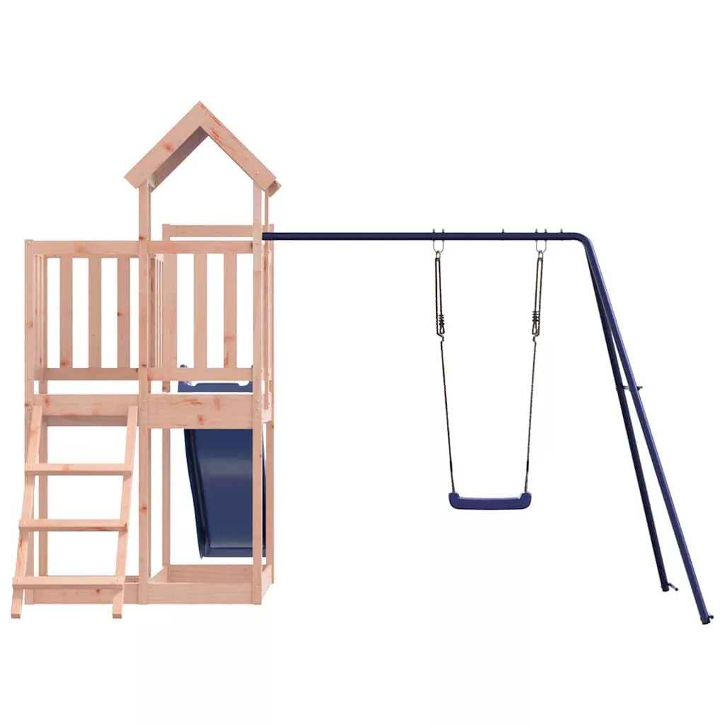 - Tartós anyag: A kerti játszószett váz tömör duglászfenyőből készült. A duglászfenyő az erősségéről és tartósságáról ismert. Gazdag vörösesbarna színe és egyedi erezetmintája meleg és természetes hangulatot áraszt. Jó stabilitásának és időjárás-állóságának köszönhetően ideális beltéri és kültéri bútorok készítéséhez.
