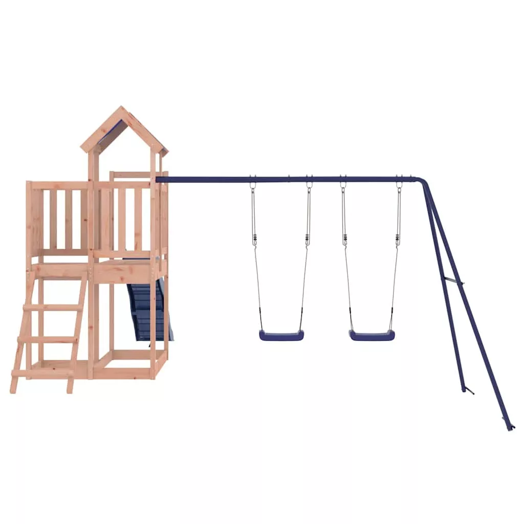 - Tartós anyag: A kerti játszószett váz tömör duglászfenyőből készült. A duglászfenyő az erősségéről és tartósságáról ismert. Gazdag vörösesbarna színe és egyedi erezetmintája meleg és természetes hangulatot áraszt. Jó stabilitásának és időjárás-állóságának köszönhetően ideális beltéri és kültéri bútorok készítéséhez.