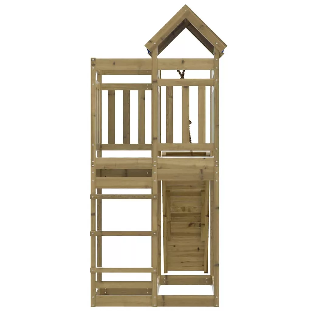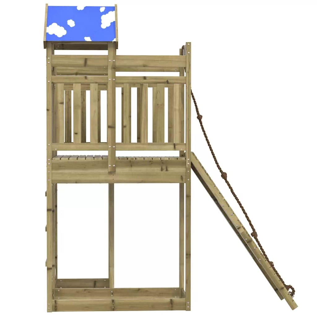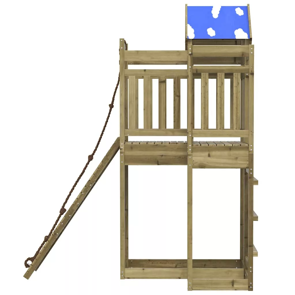 - Játszótorony anyaga: vákuumos nyomással impregnált fenyőfa
