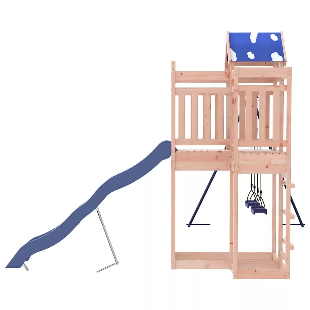 - Tartós anyag: A kerti játszószett váz tömör duglászfenyőből készült. A duglászfenyő az erősségéről és tartósságáról ismert. Gazdag vörösesbarna színe és egyedi erezetmintája meleg és természetes hangulatot áraszt. Jó stabilitásának és időjárás-állóságának köszönhetően ideális beltéri és kültéri bútorok készítéséhez.