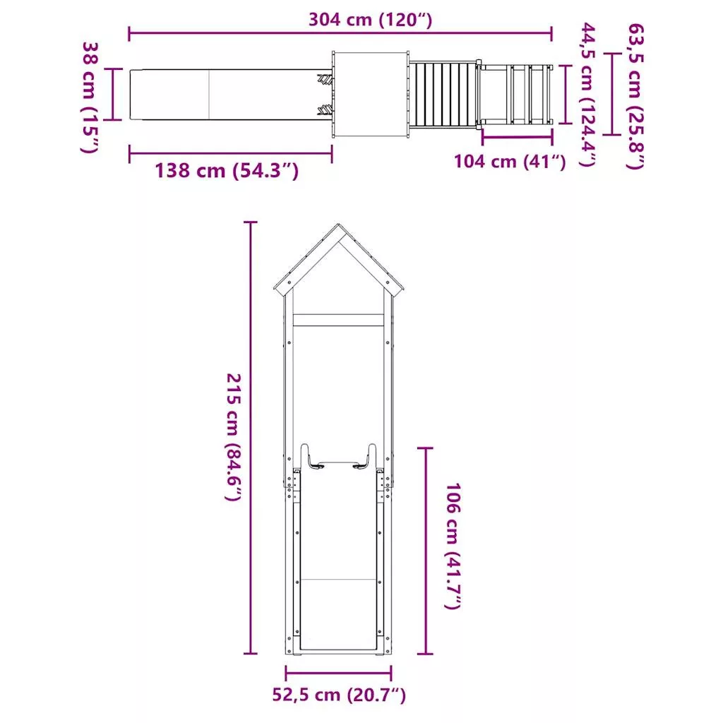 - Játszótorony anyaga: tömör duglászfenyő (kezeletlen)