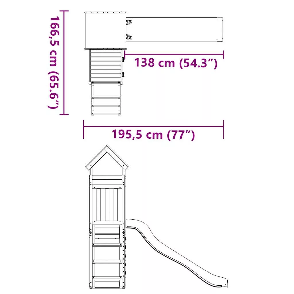 - Játszótorony anyaga: vákuumos nyomással impregnált fenyőfa