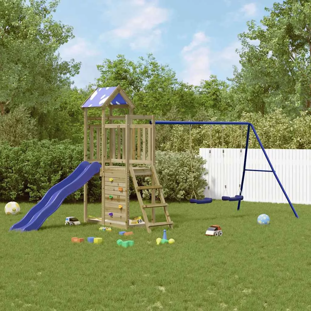 - Játszótorony anyaga: vákuumos nyomással impregnált fenyőfa