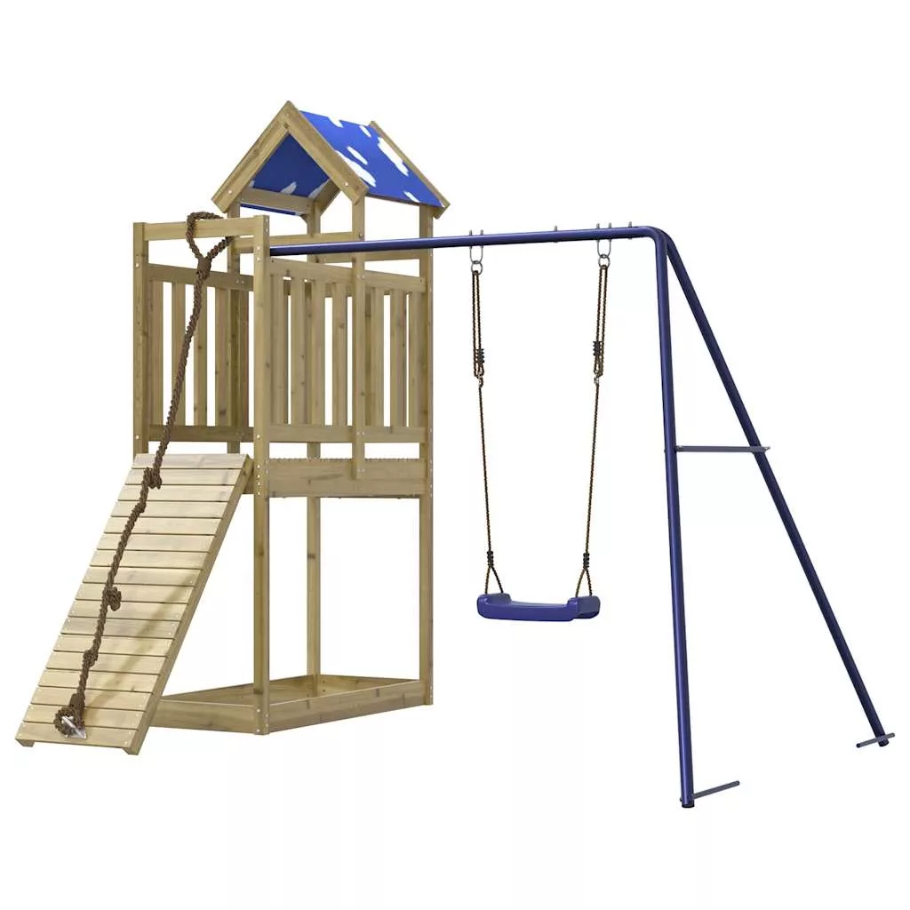 - Játszótorony anyaga: vákuumos nyomással impregnált fenyőfa