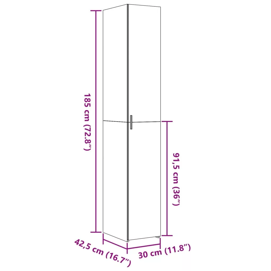 vidaXL szürke sonoma színű szerelt fa magasszekrény 30 x 42,5 x 185 cm