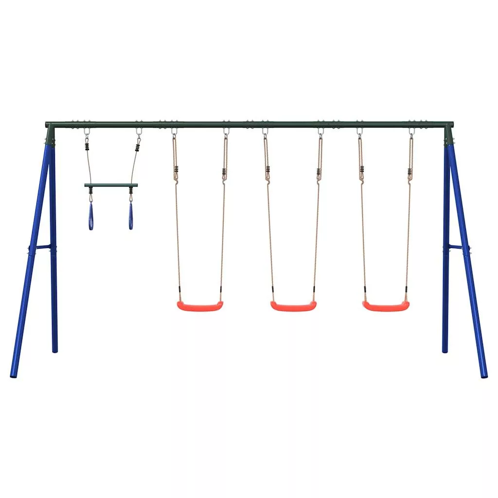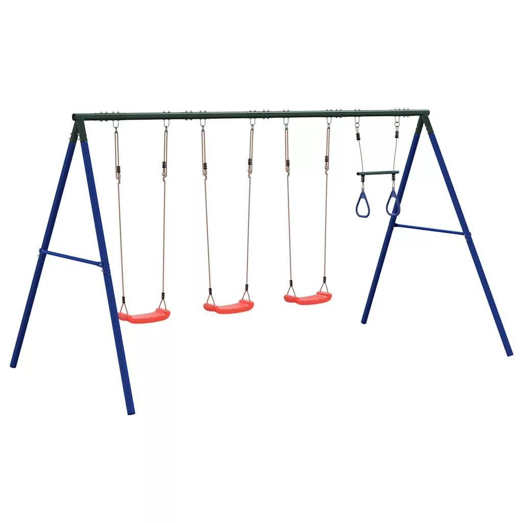 - Szórakoztató foglalkoztatóközpont: Ez a gyermekhintaszett 2 különböző játéklehetőséget tartalmaz három hintaüléssel és egy tornagyűrűkkel ellátott trapézzal. Így a gyerekek kedvükre hintázhatnak és mászhatnak.