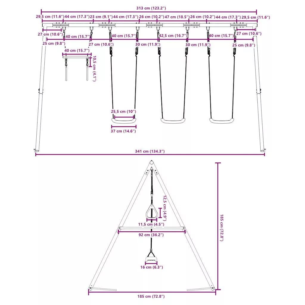 - Nagy teherbírású fém váz: Ez a hintaváz festett acélcsövekből készült, amelyek rozsdaállók, rendkívül erősek, és ellenállnak a deformációnak, kiváló stabilitást és tartósságot biztosítva. Az A-alakú szerkezet erős támaszt nyújt, ingadozás nélkül.