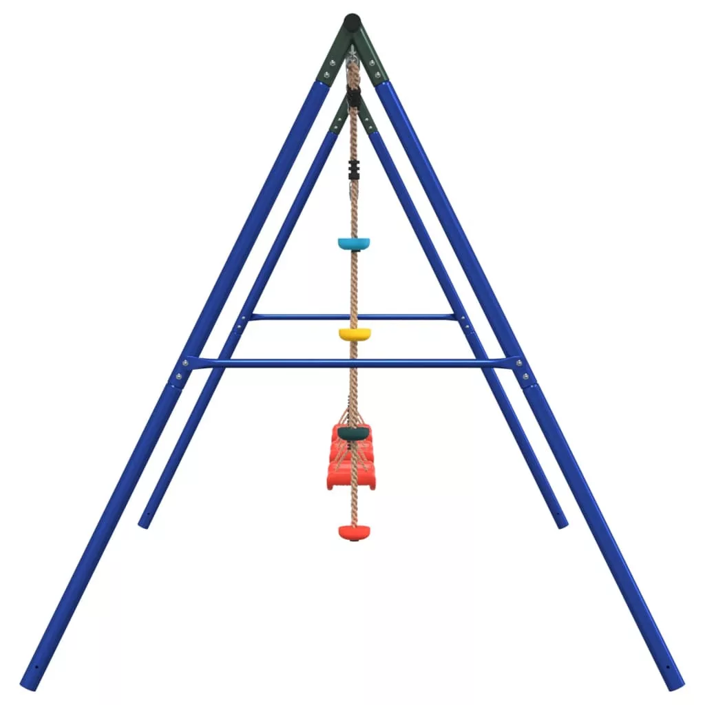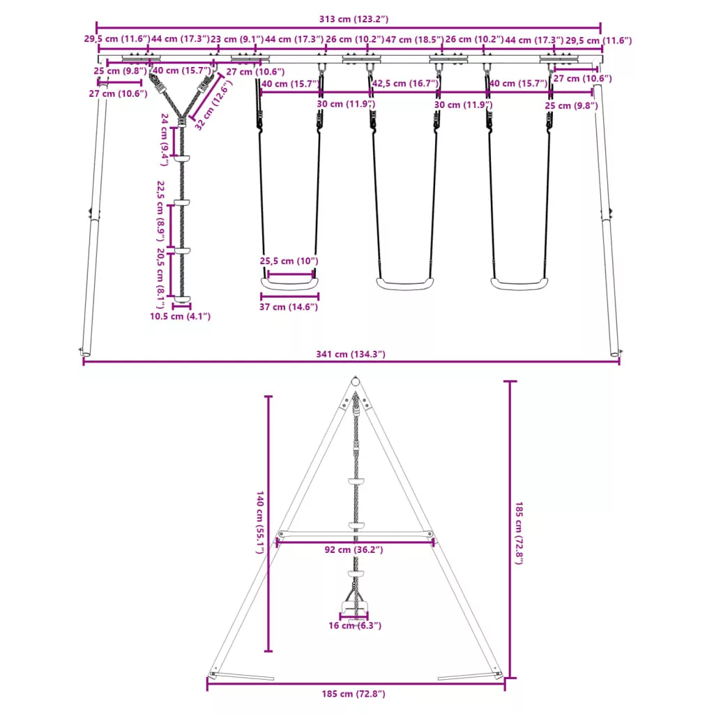 - Szórakoztató foglalkoztatóközpont: Ez a gyermekhintaszett 2 különböző játéklehetőséget tartalmaz három hintaüléssel és egy tárcsákkal ellátott kötélhintával. Így a gyerekek kedvükre hintázhatnak és mászhatnak.