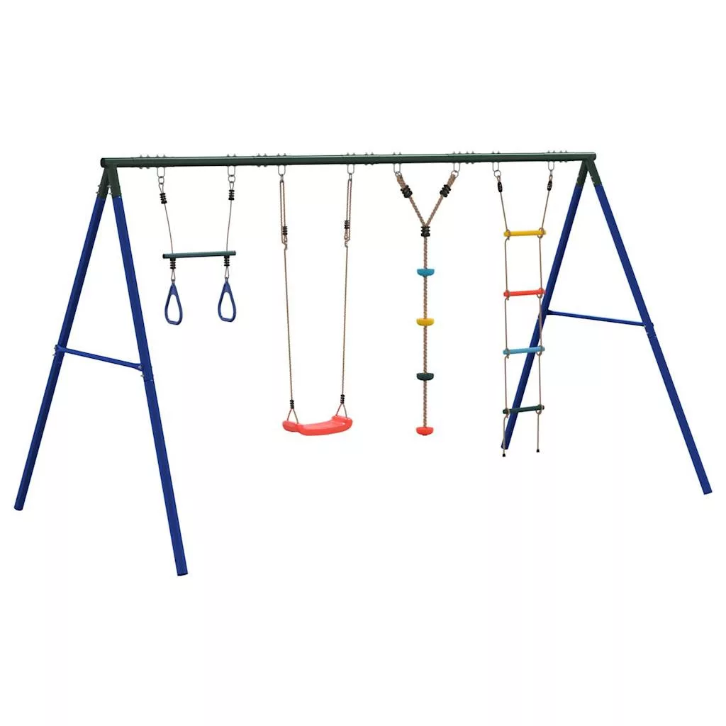 - Szórakoztató foglalkoztatóközpont: Ez a gyermekhintaszett 4 különböző játéklehetőséget tartalmaz hintaüléssel, tárcsás hintával, mászólétrával, és tornagyűrűkkel ellátott trapézzal. Így a gyerekek kedvükre hintázhatnak és mászhatnak.