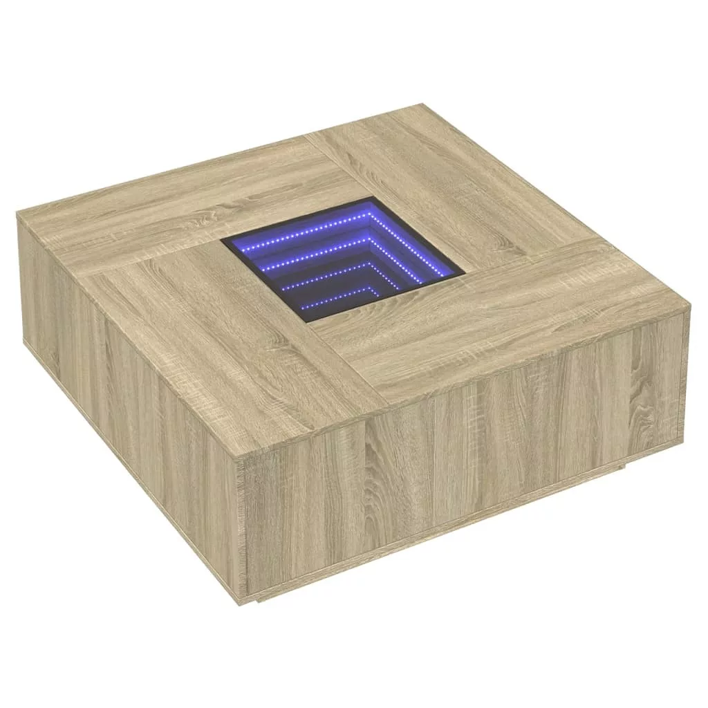 Az egyedi LED-es dohányzóasztal végtelen hatású tükör asztallappal különböző helyekre alkalmas.