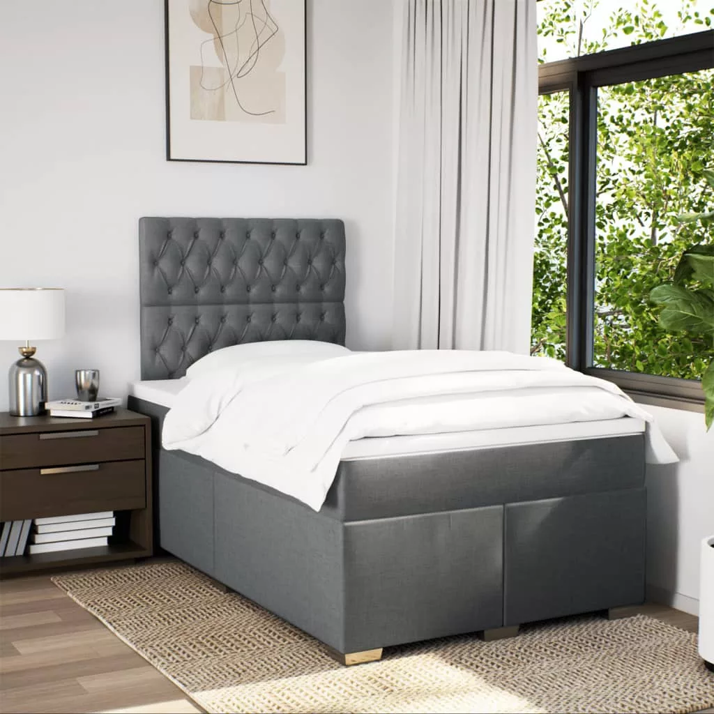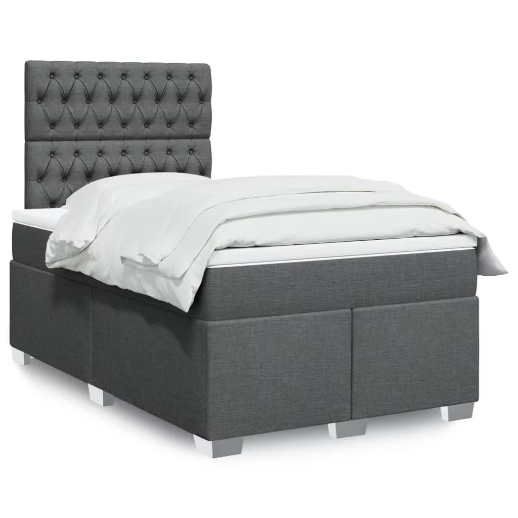 vidaXL sötétszürke szövet rugós ágy matraccal 120 x 190 cm