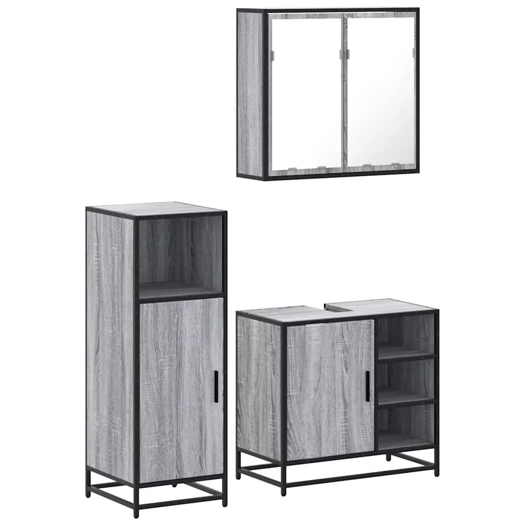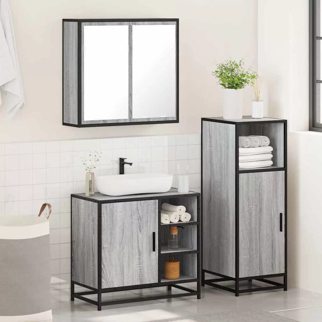 vidaXL 3 részes szürke sonoma színű szerelt fa fürdőszobai bútorszett