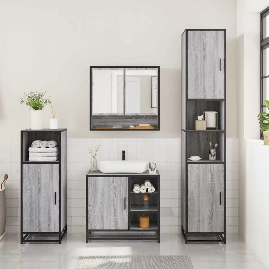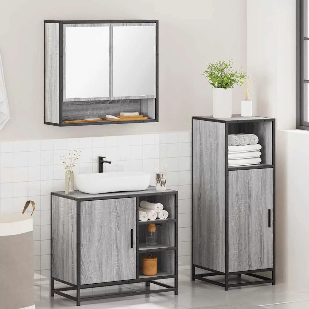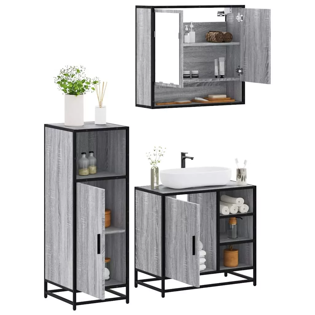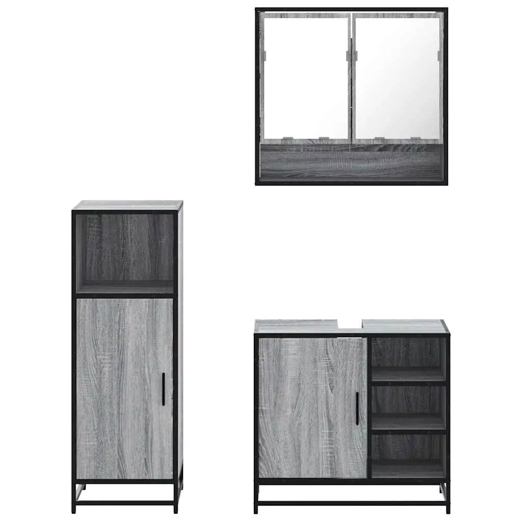 vidaXL 3 részes szürke sonoma színű szerelt fa fürdőszobai bútorszett