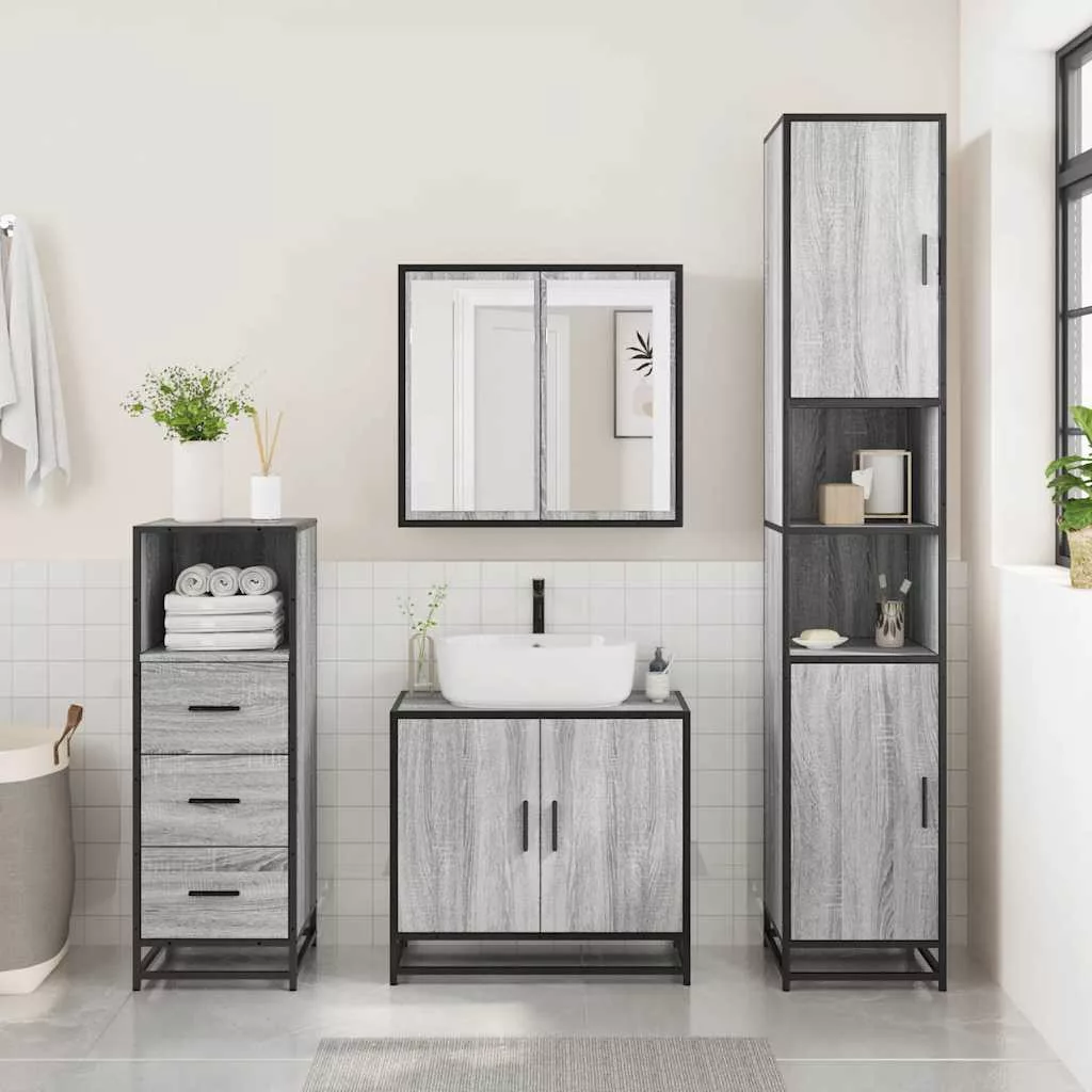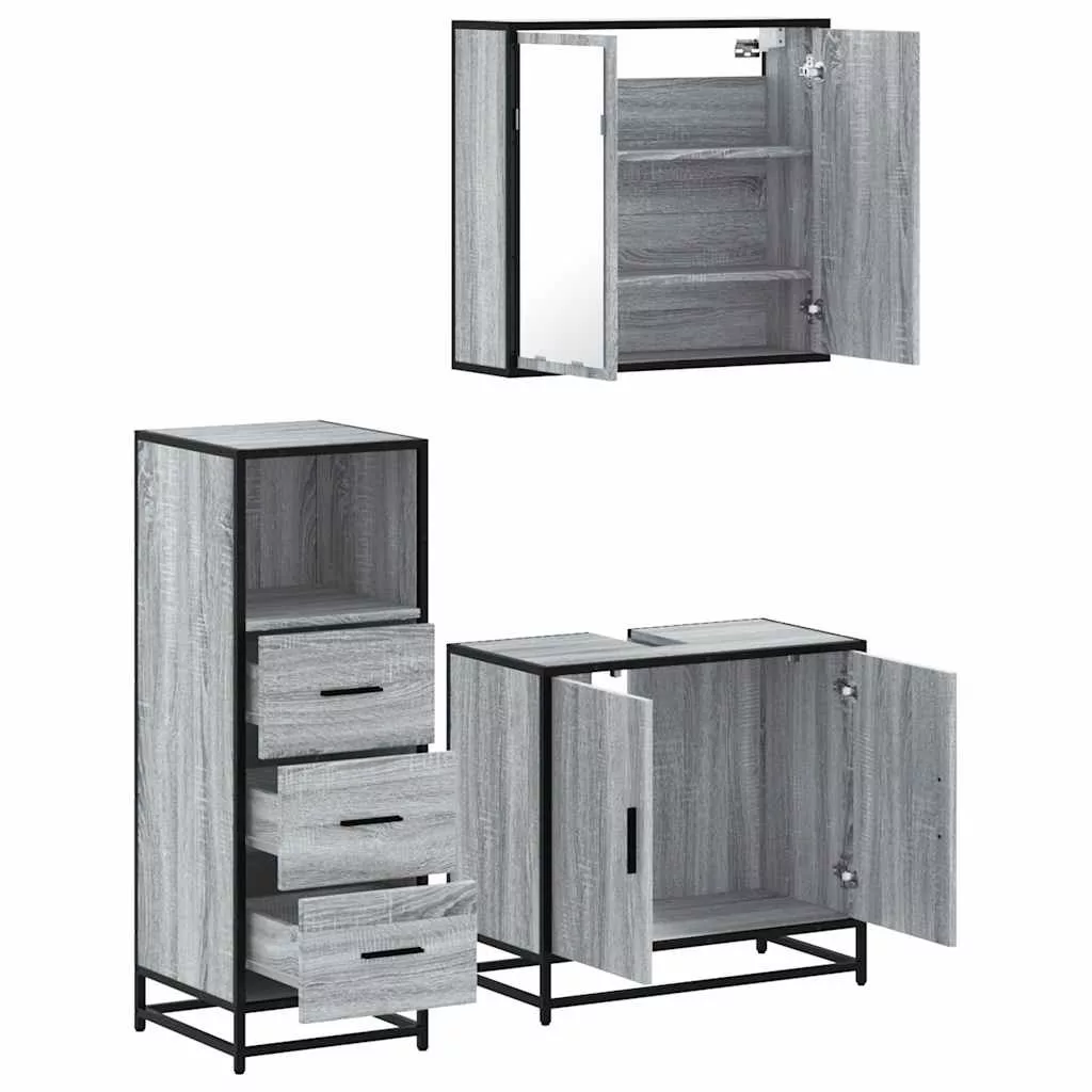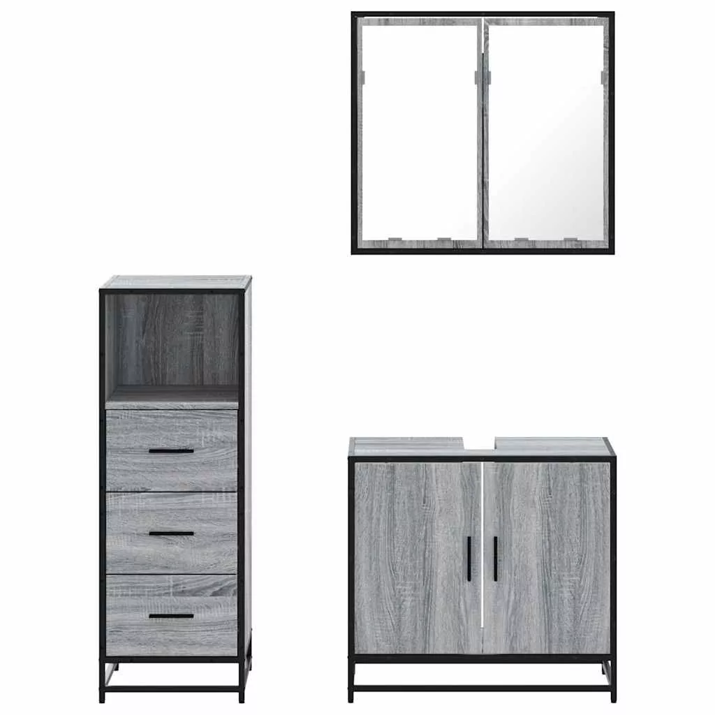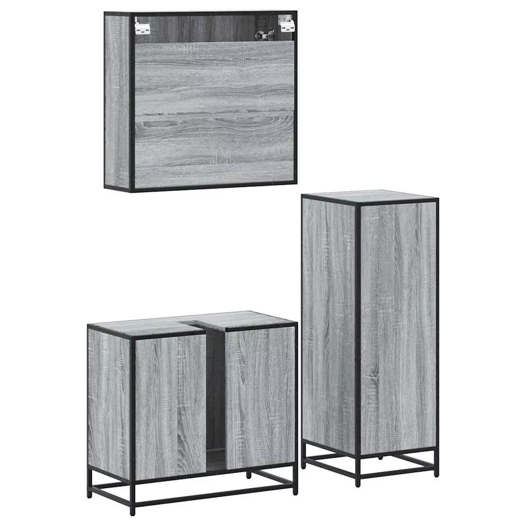 vidaXL 3 részes szürke sonoma színű szerelt fa fürdőszobai bútorszett