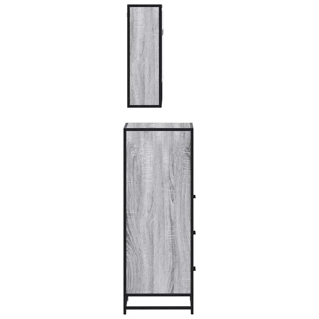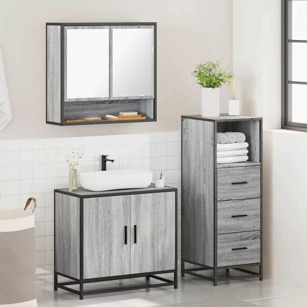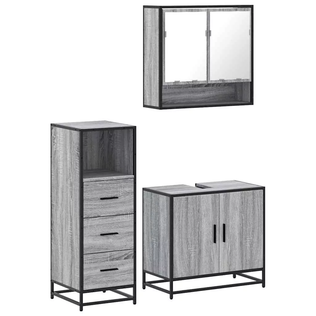 vidaXL 3 részes szürke sonoma színű szerelt fa fürdőszobai bútorszett