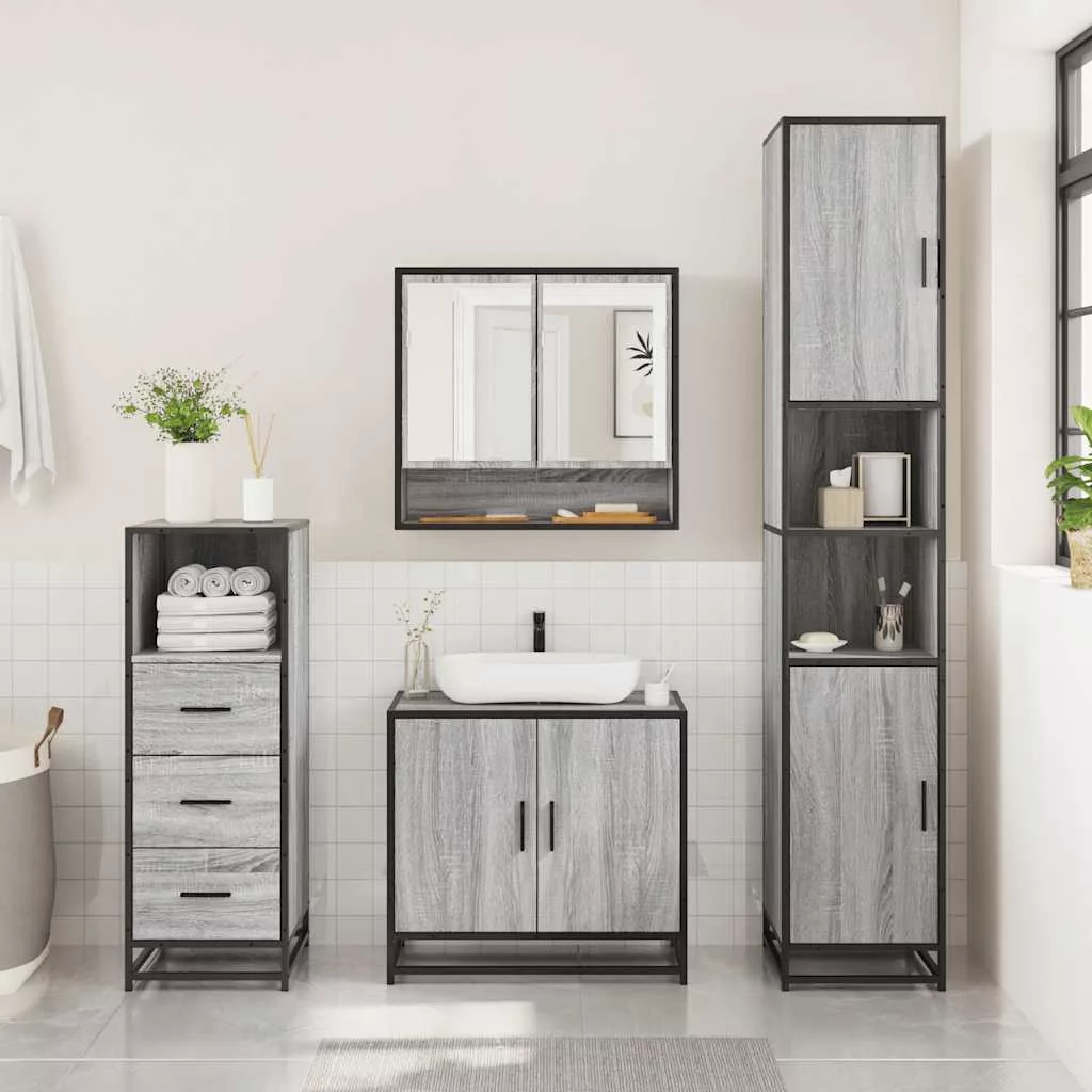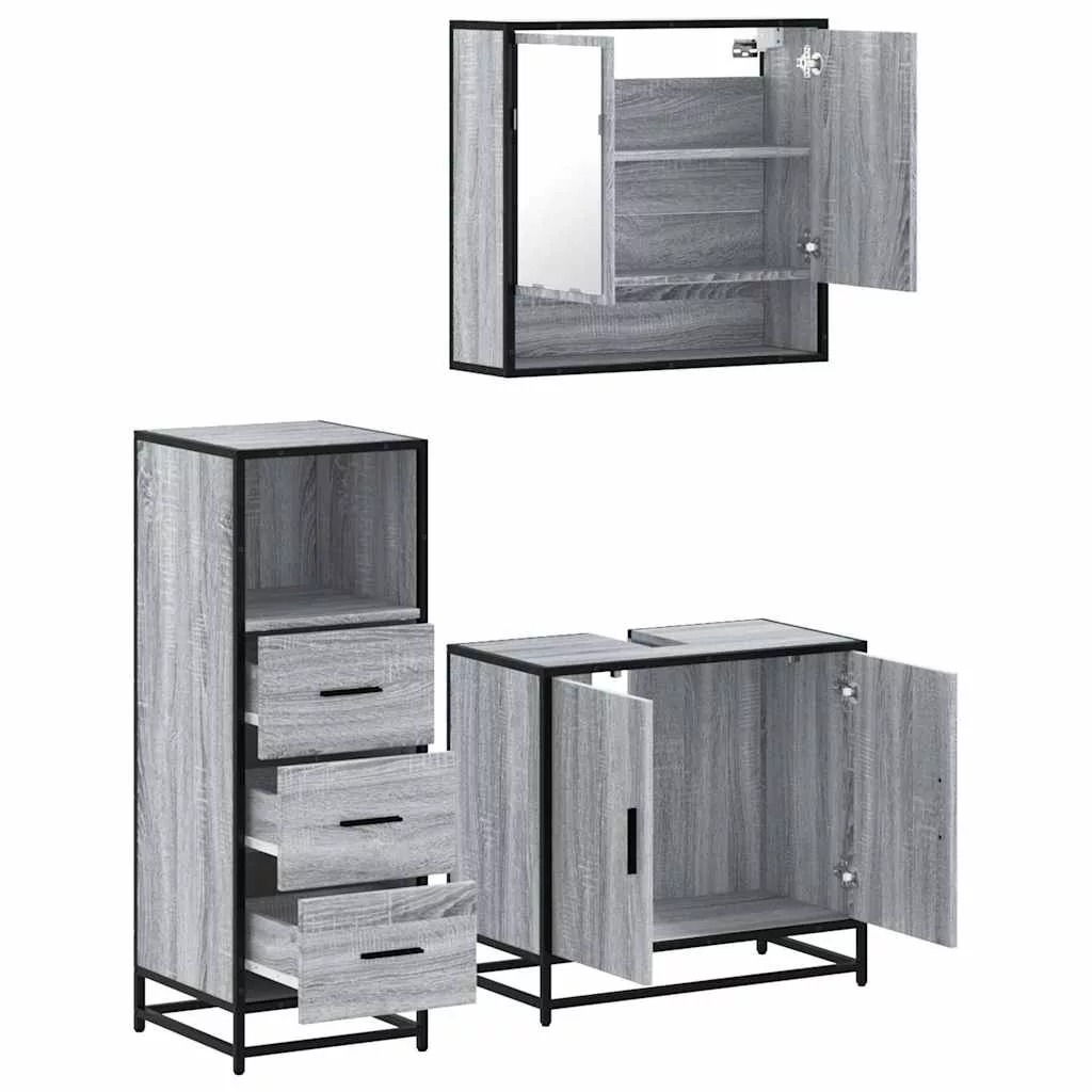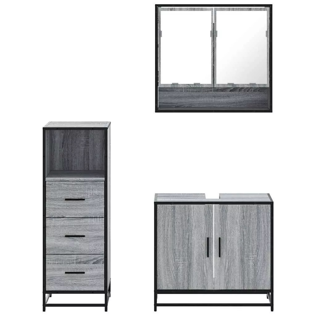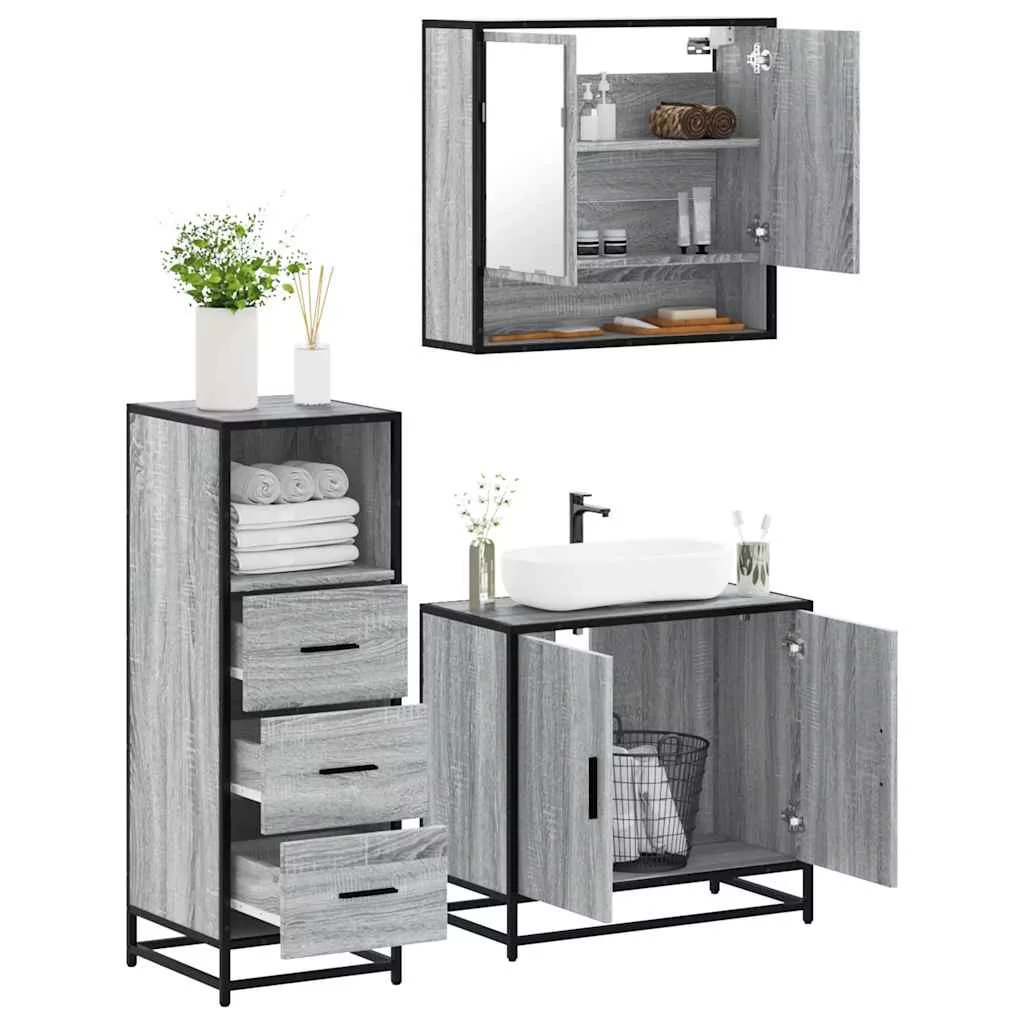 vidaXL 3 részes szürke sonoma színű szerelt fa fürdőszobai bútorszett
