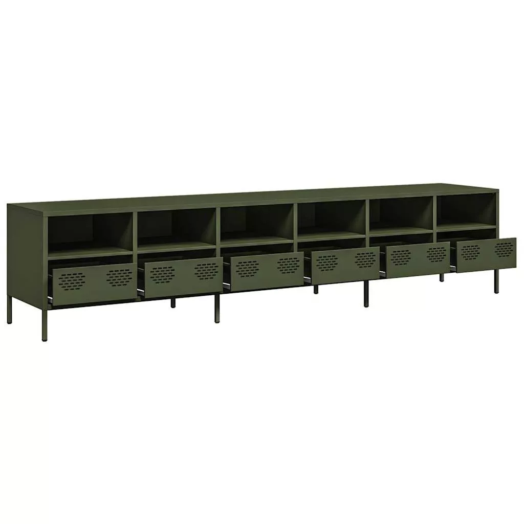 - Bőséges tárolóhely: Ez a TV-szekrény bőséges helyet kínál folyóiratai, könyvei, DVD-i és multimédiás eszközei kézközelben történő rendezett tárolásához.