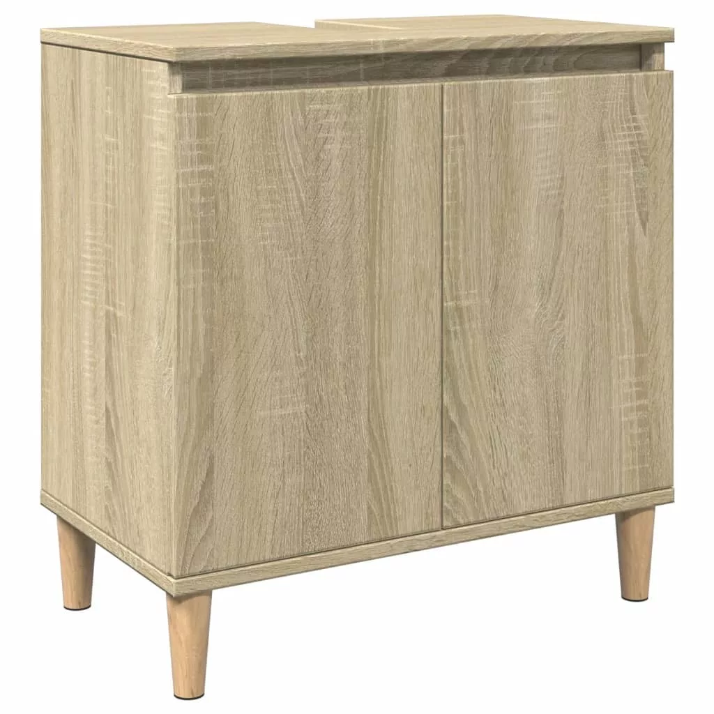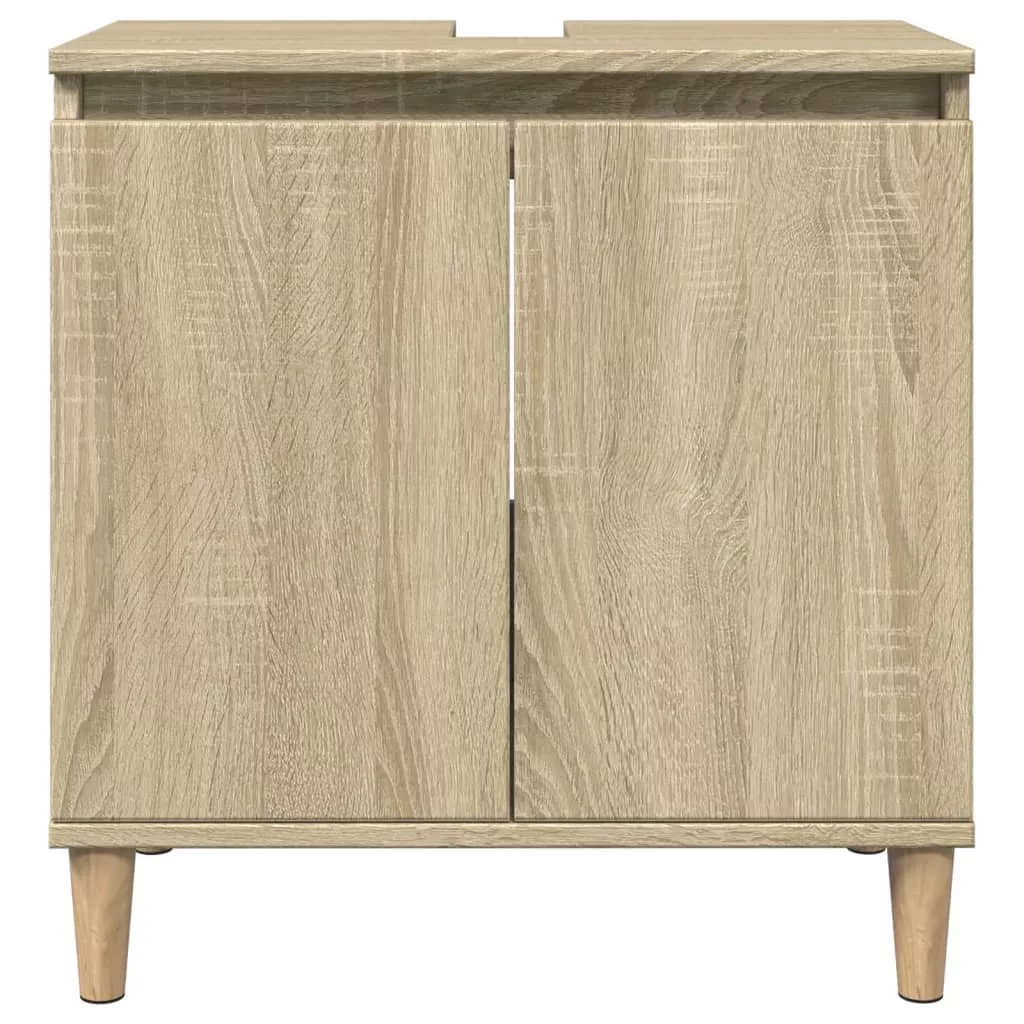 vidaXL 3 részes sonoma tölgyszínű szerelt fa fürdőszobai bútorszett
