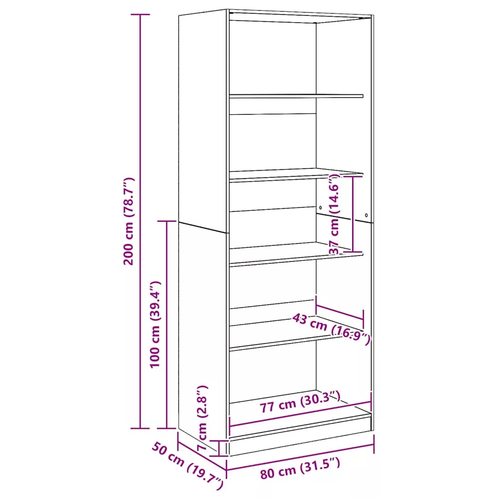 vidaXL kézműves tölgy színű szerelt fa ruhásszekrény 80 x 50 x 200 cm