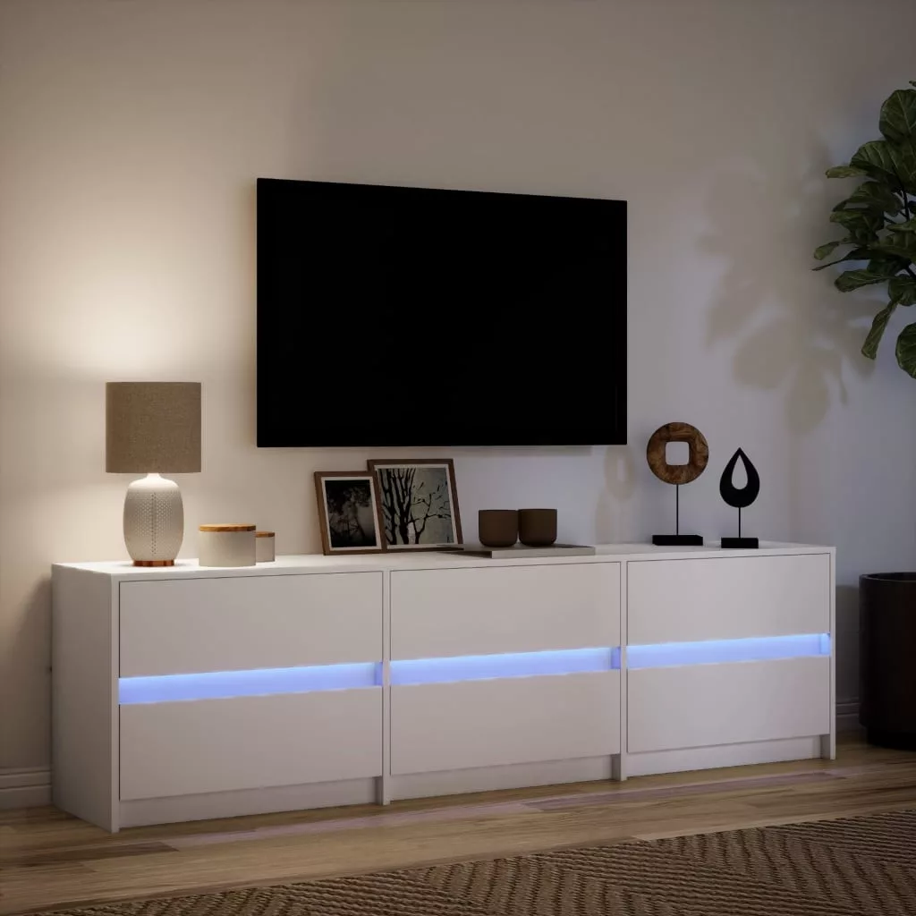Ez a stílusos, mégis praktikus kialakítású LED lámpákkal ellátott TV-szekrény minden bizonnyal szobája középpontjává fog válni.