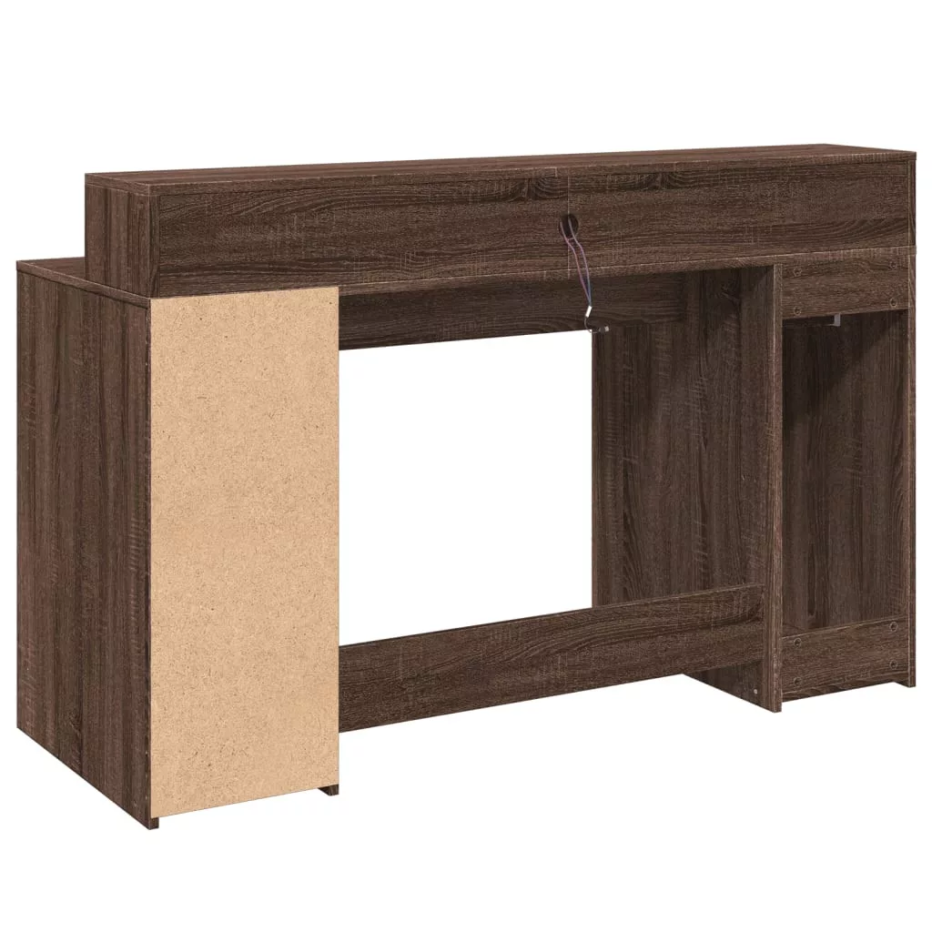 vidaXL barna tölgy színű szerelt fa íróasztal LED-ekkel 140x55x91 cm