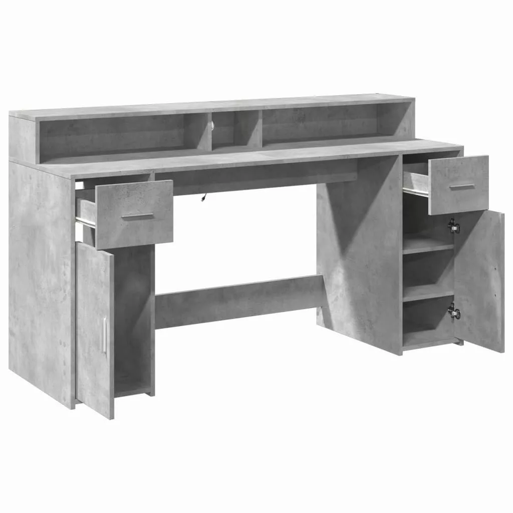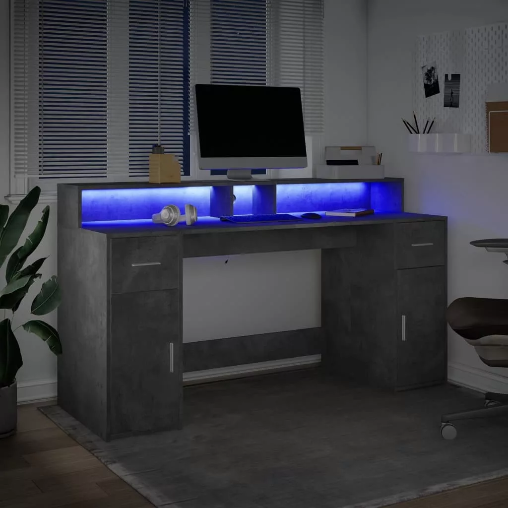 Ez a bőséges tárolóhellyel rendelkező, tartós szereketű és LED-világítással ellátott íróasztal tökéletes egy rendezett és elegáns munka- vagy játékkörnyezet kialakításához.