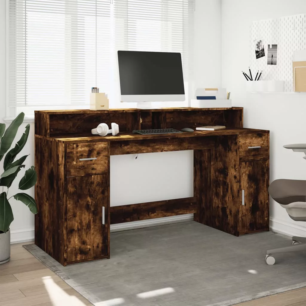 vidaXL füstös tölgy színű szerelt fa íróasztal LED-ekkel 160x55x91 cm