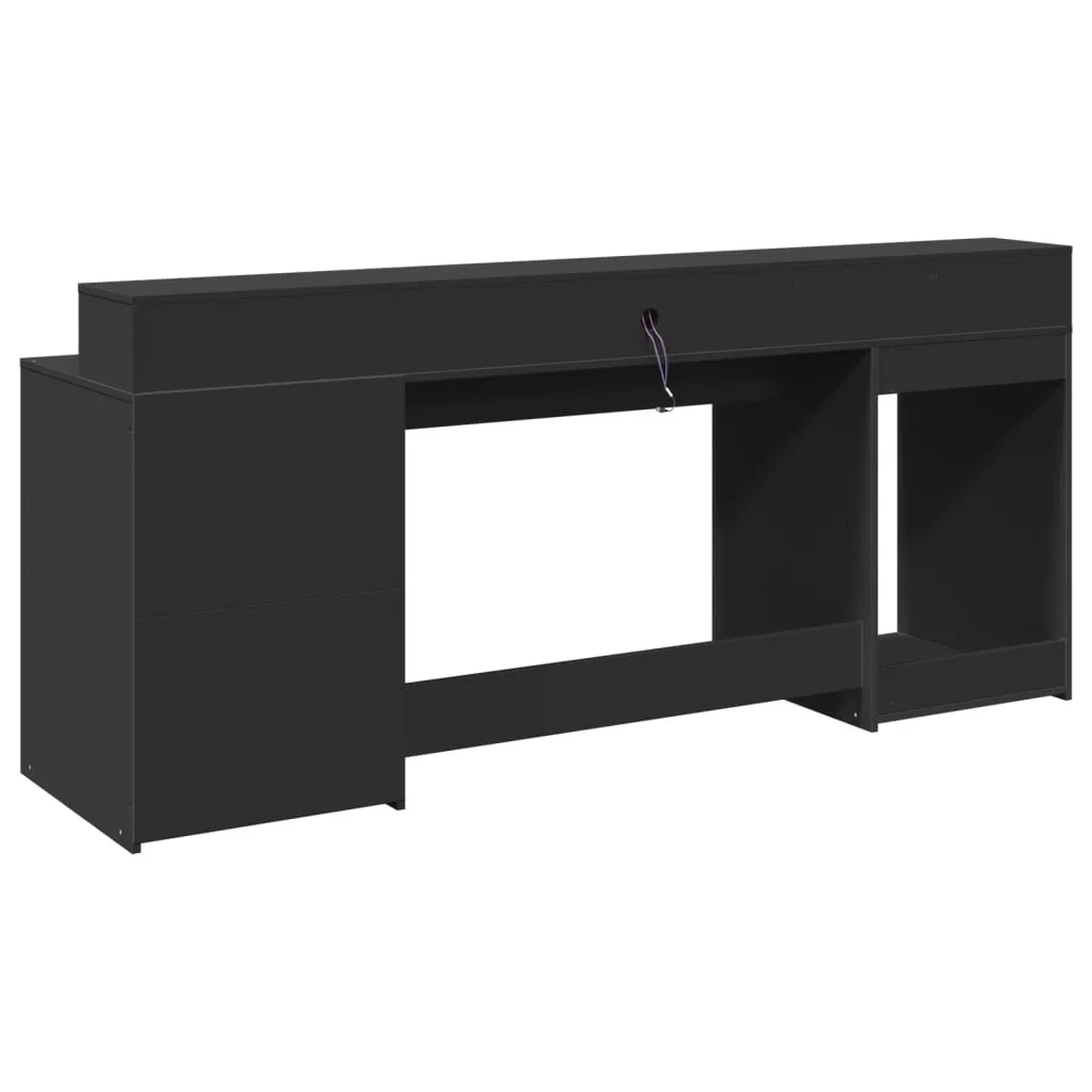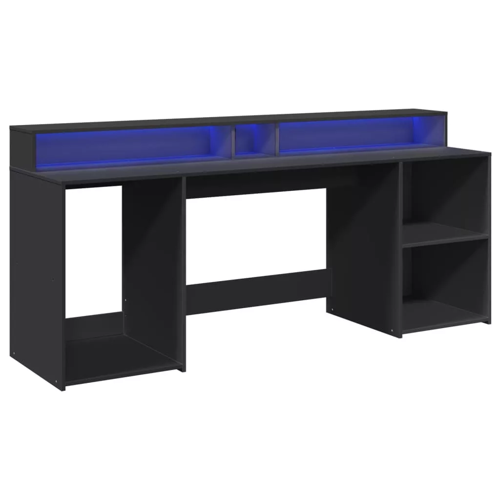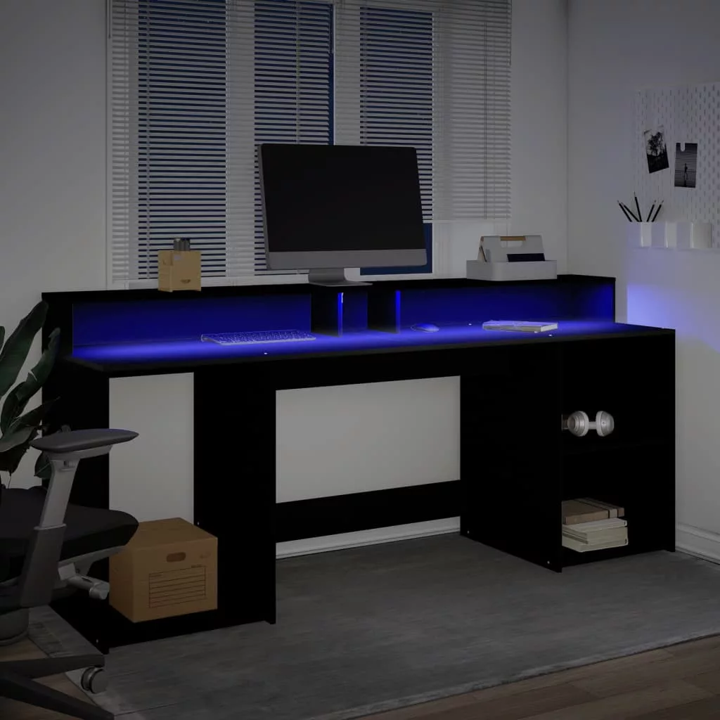 Ez a bőséges tárolóhellyel rendelkező, tartós szereketű és LED-világítással ellátott íróasztal tökéletes egy rendezett és elegáns munka- vagy játékkörnyezet kialakításához.