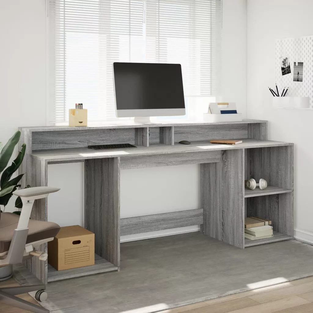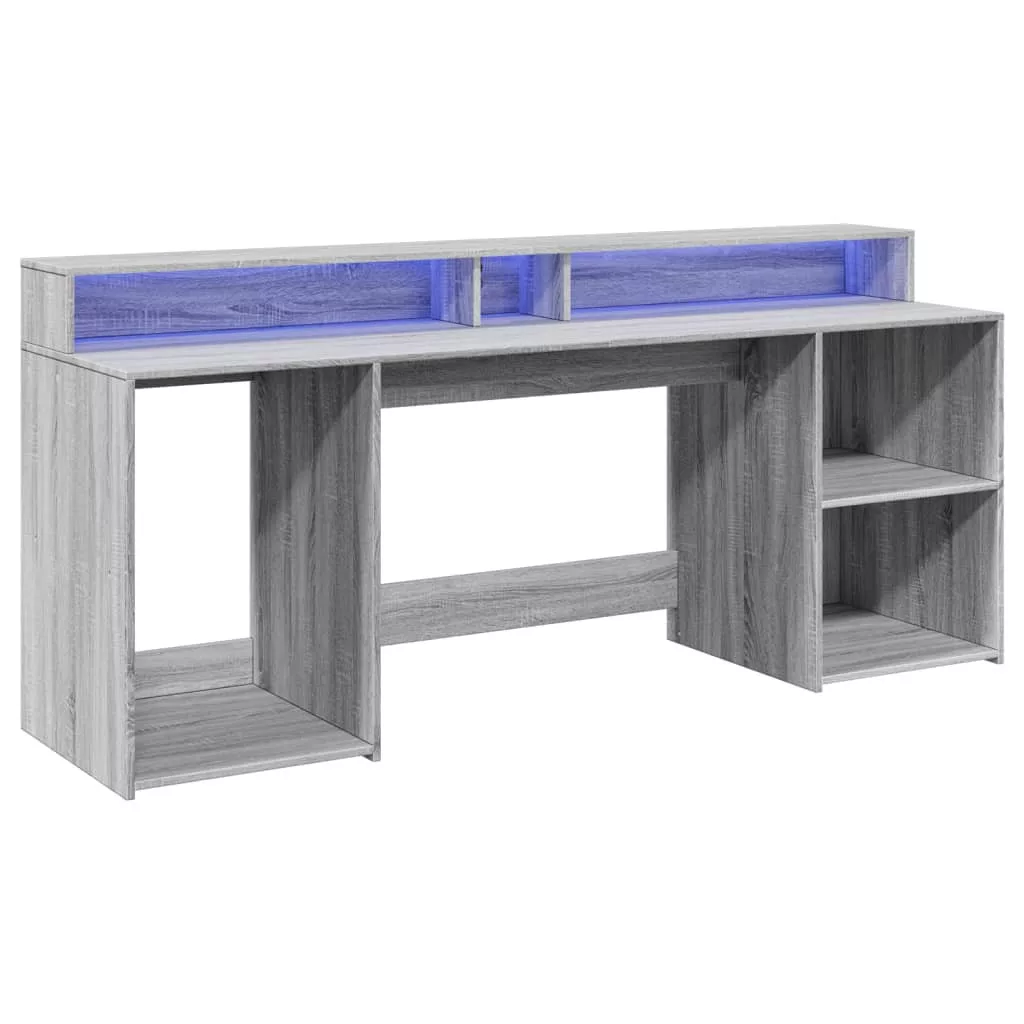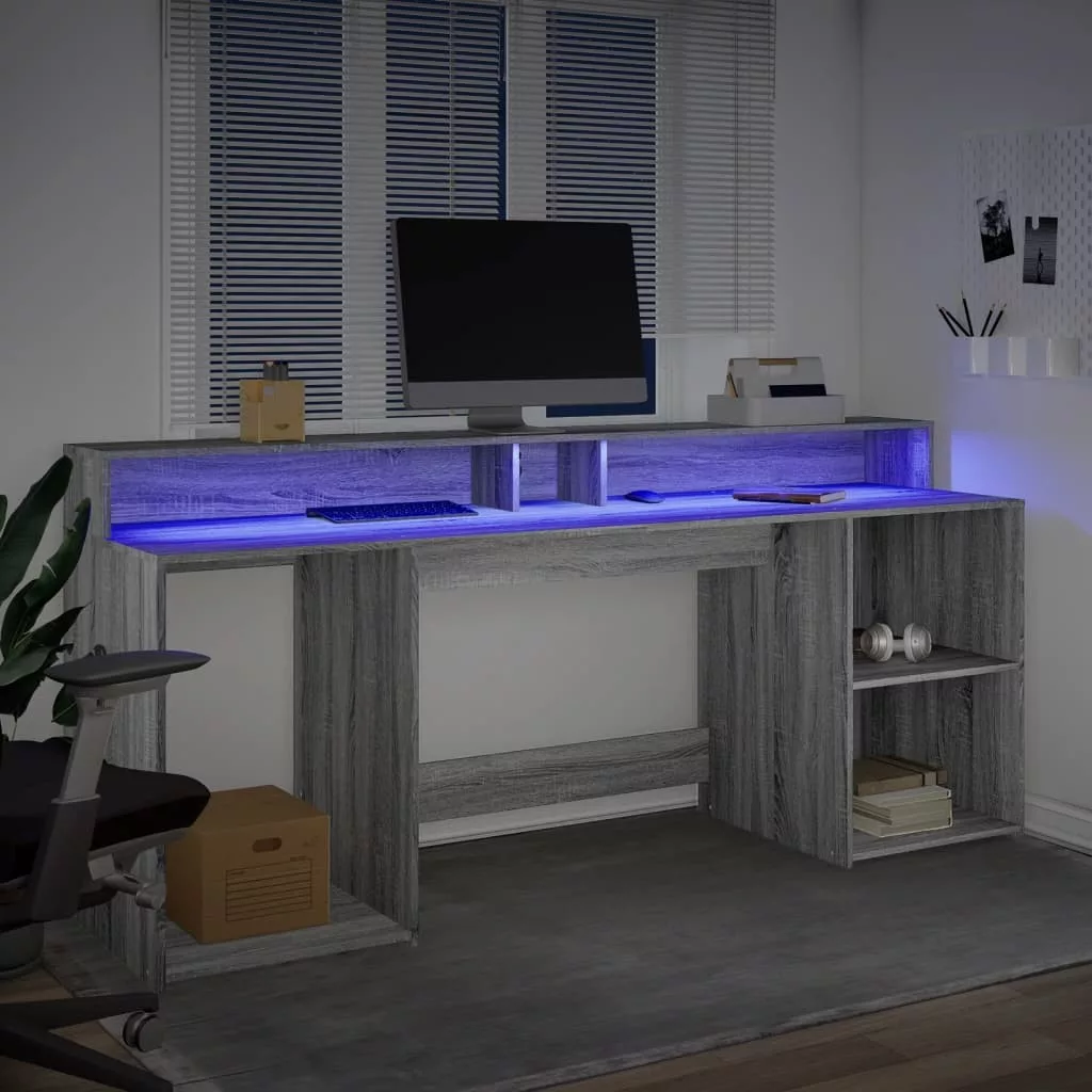 Ez a bőséges tárolóhellyel rendelkező, tartós szereketű és LED-világítással ellátott íróasztal tökéletes egy rendezett és elegáns munka- vagy játékkörnyezet kialakításához.