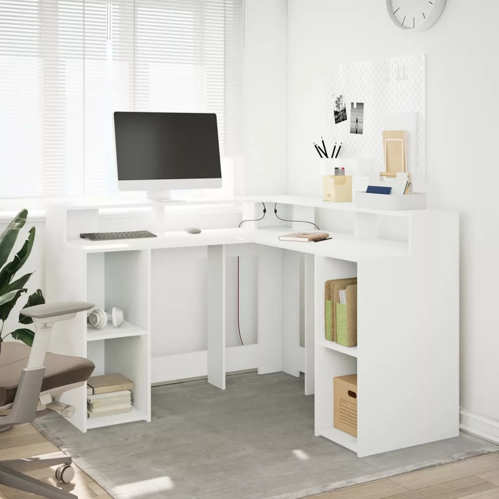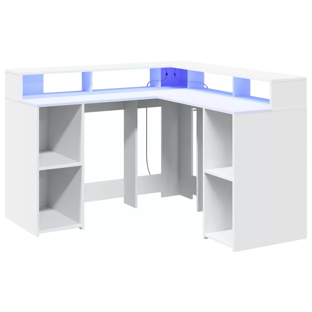 Ez a bőséges tárolóhellyel rendelkező, tartós szereketű és LED-világítással ellátott íróasztal tökéletes egy rendezett és elegáns munka- vagy játékkörnyezet kialakításához.
