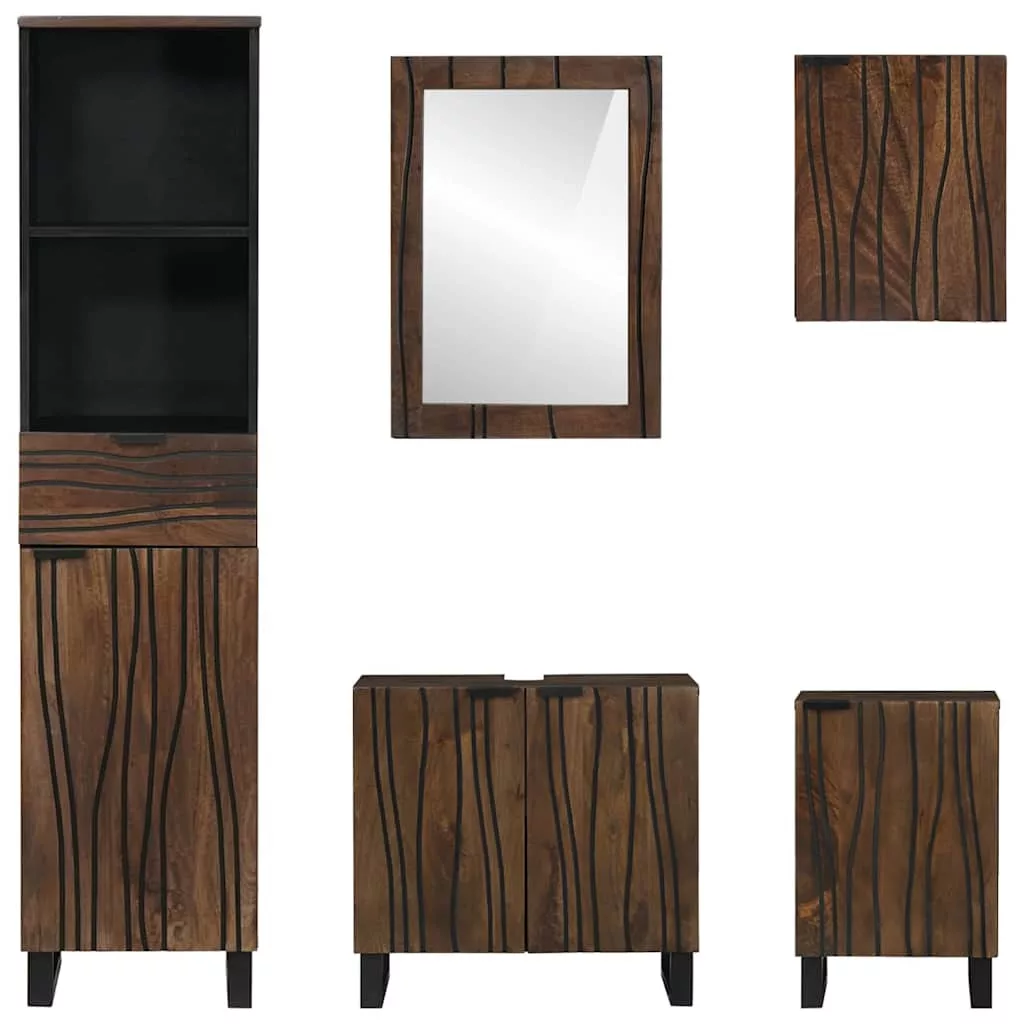 - Átfogó készlet: A szett tartalmaz egy 50 x 70 cm-es tükröt, egy 62 x 33 x 58 cm-es mosdószekrényt, egy 38 x 33 x 160 cm-es magas szekrényt, egy 38 x 33 x 58 cm-es alacsony szekrényt és egy 38 x 33 x 48 cm-es faliszekrényt. Ez a teljes szett sokoldalú tárolási és megjelenítési lehetőségeket nyújt, könnyen alkalmazkodik különböző fürdőszobai igényekhez.